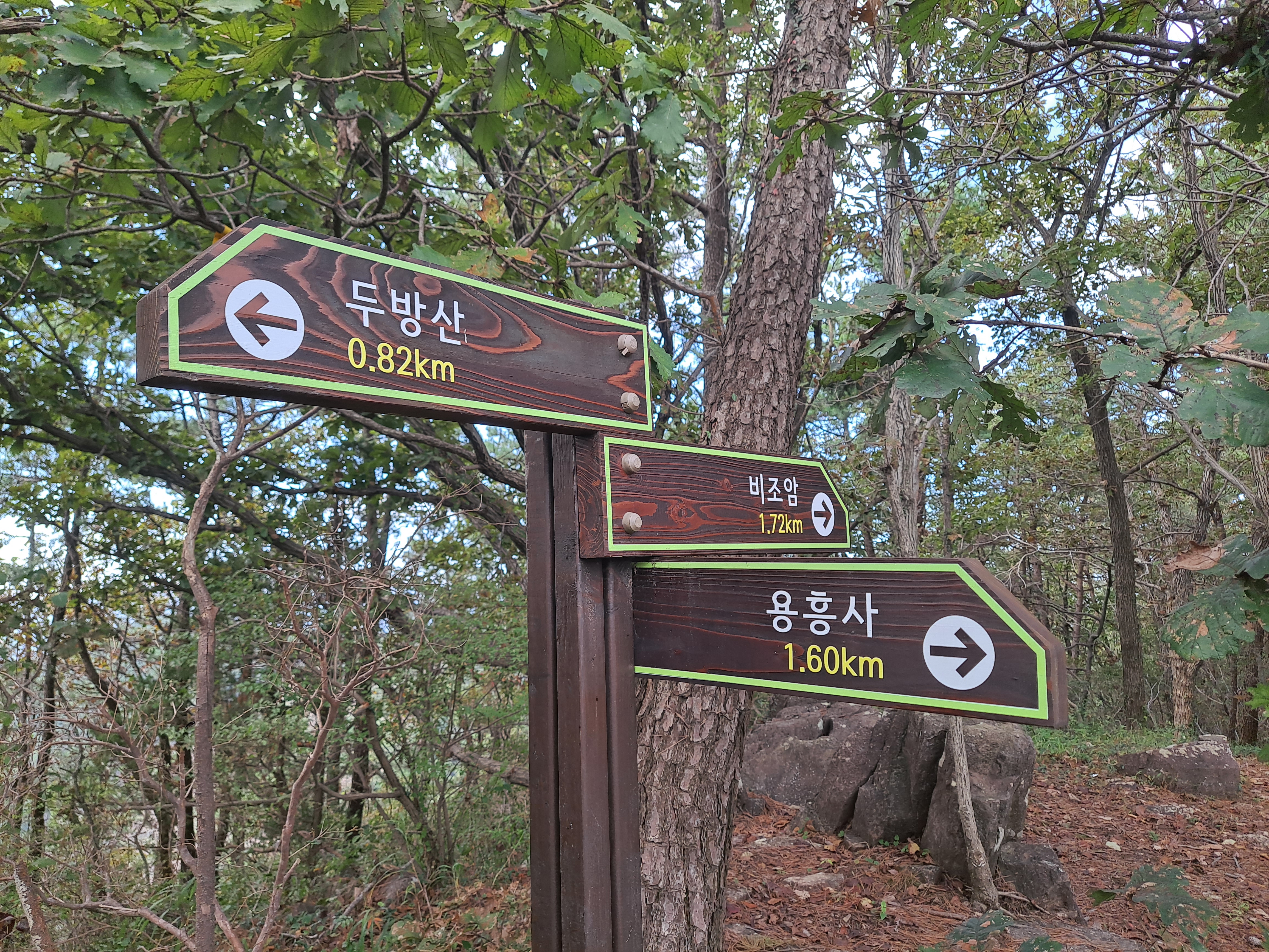 12;55 용흥사 갈림길. 용흥사1.6k/두방산0.82k/비조암1.72k