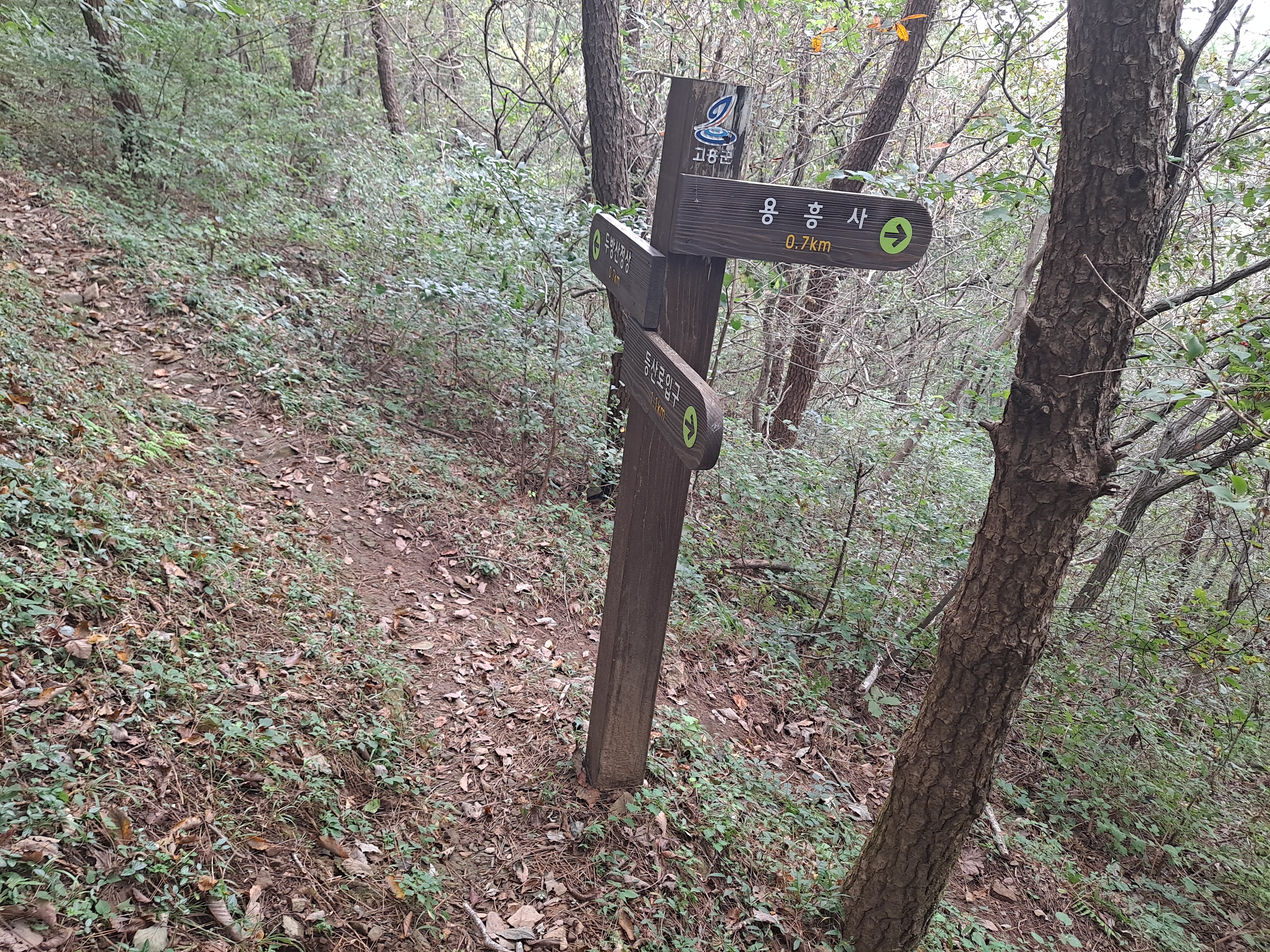 11;47 갈림길. 용흥사0.7k/두방산0.7k/등산로 입구1.1k