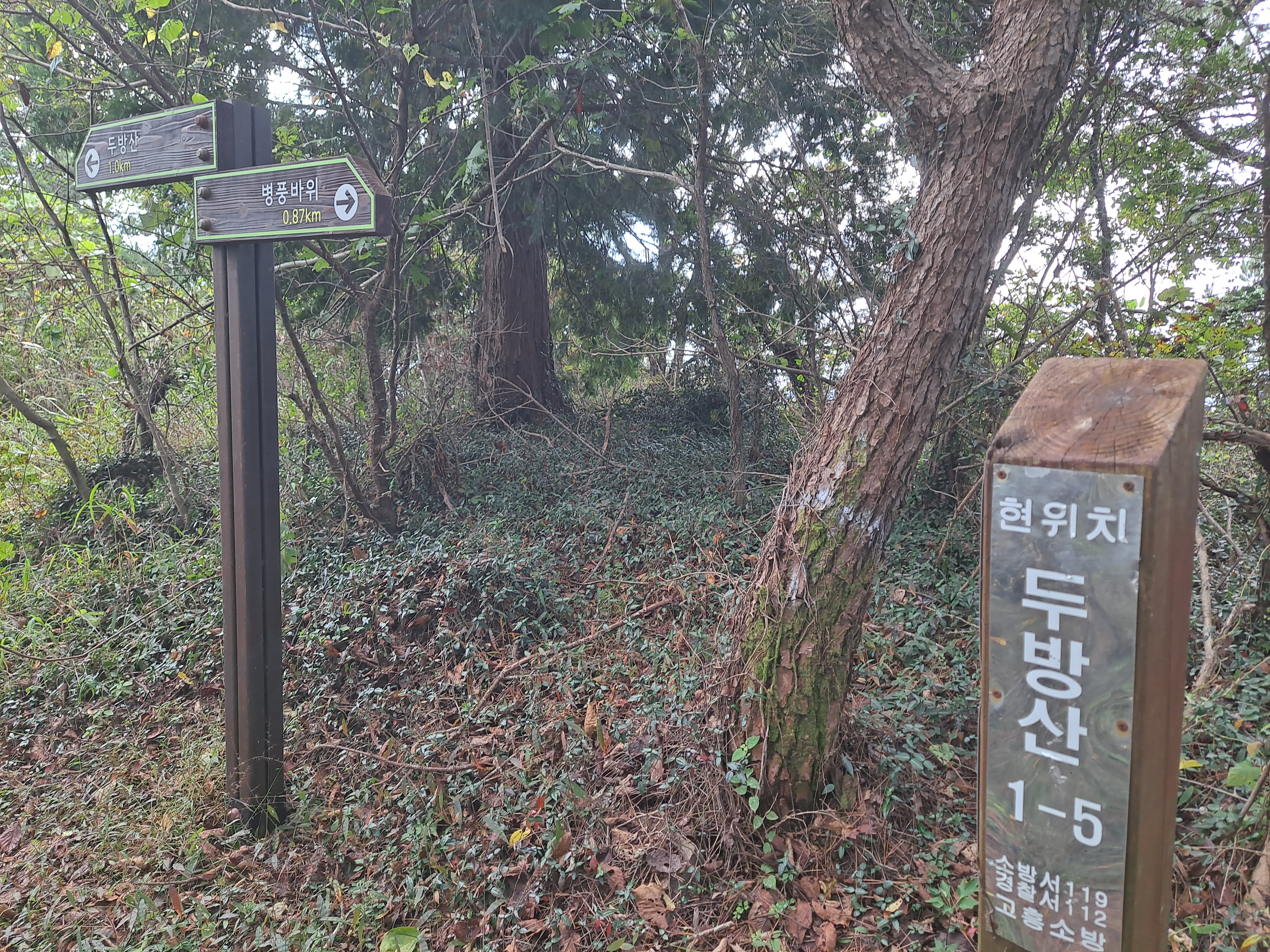1;14 병풍바위 삼거리. 병풍바위0.1k/비조암 0.75k/두방산1.8k