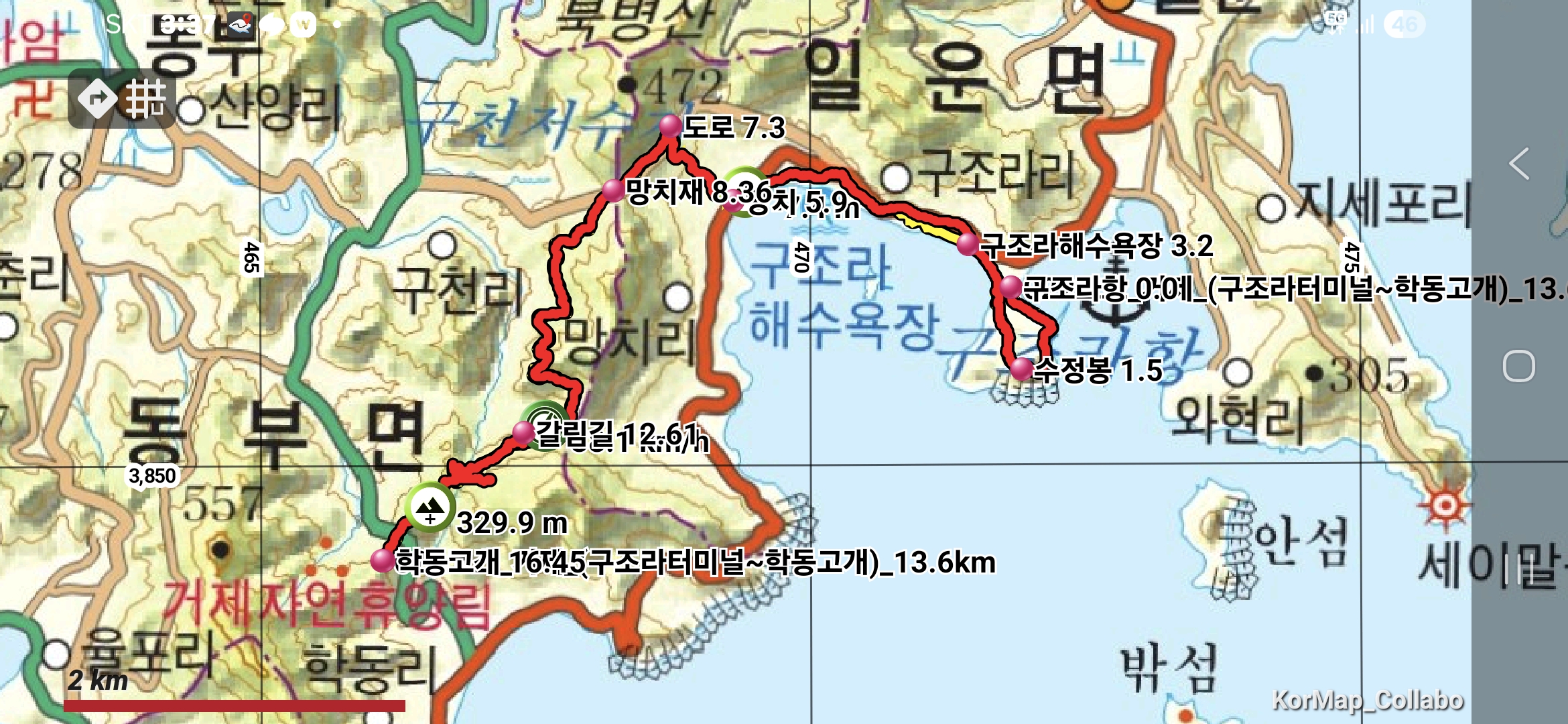 10;36~44 구조라항. 22코스를 시작한다.