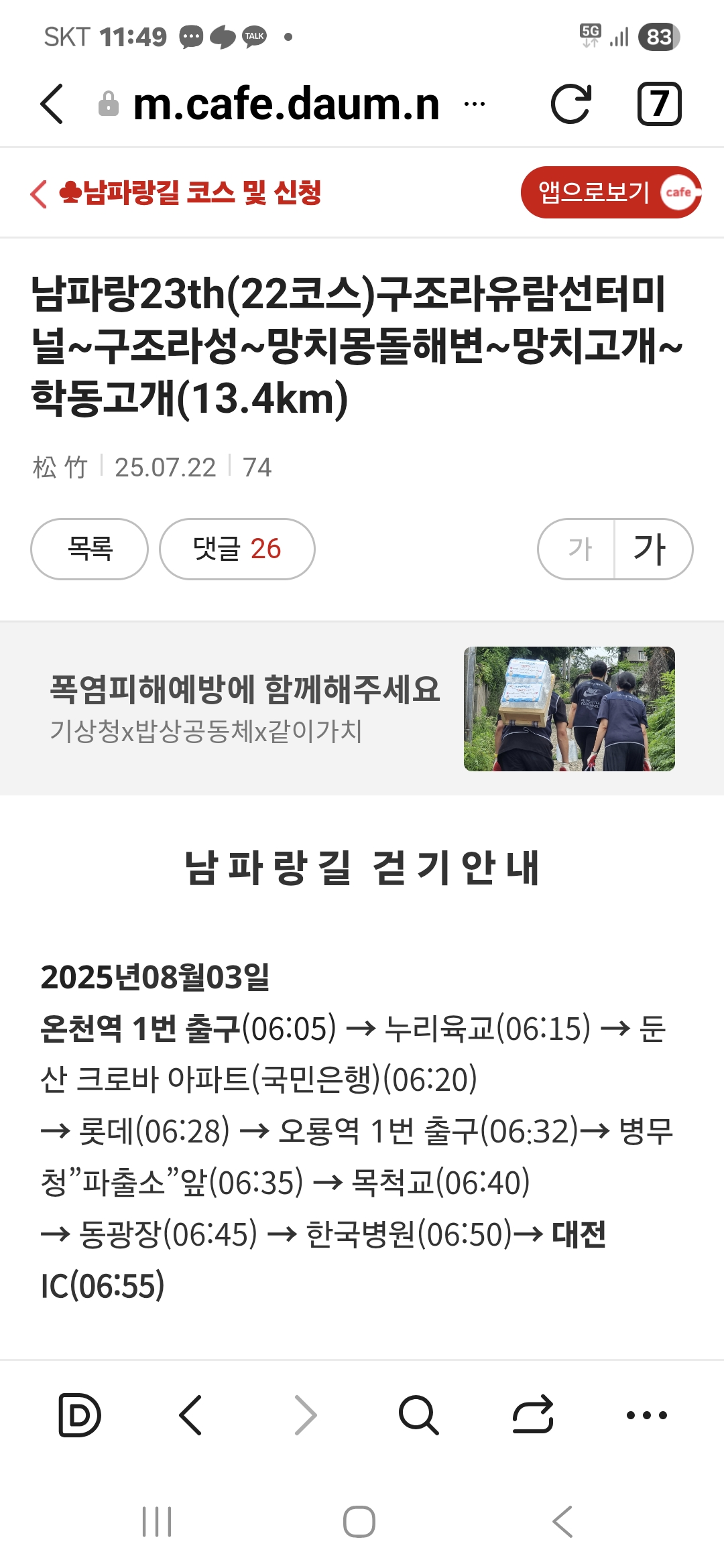 1. 일시; 2025년 8월 3일 일요일 흐리고 덥다. 저녁 무렵부터 비.