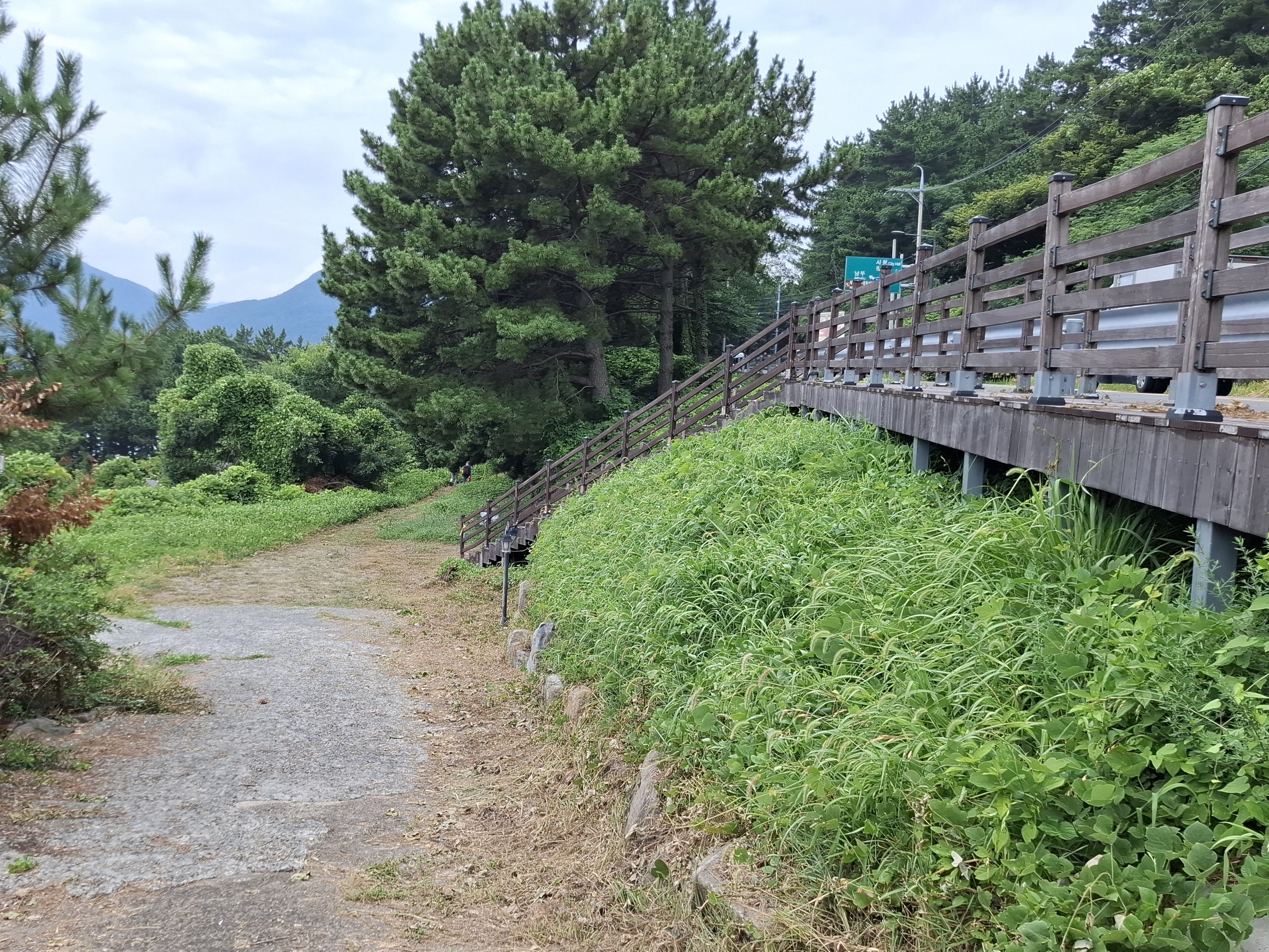 비예보가 있어 흐리다. 구름에 해가 가려 그래도 뜨거운 느낌은 덜하다.