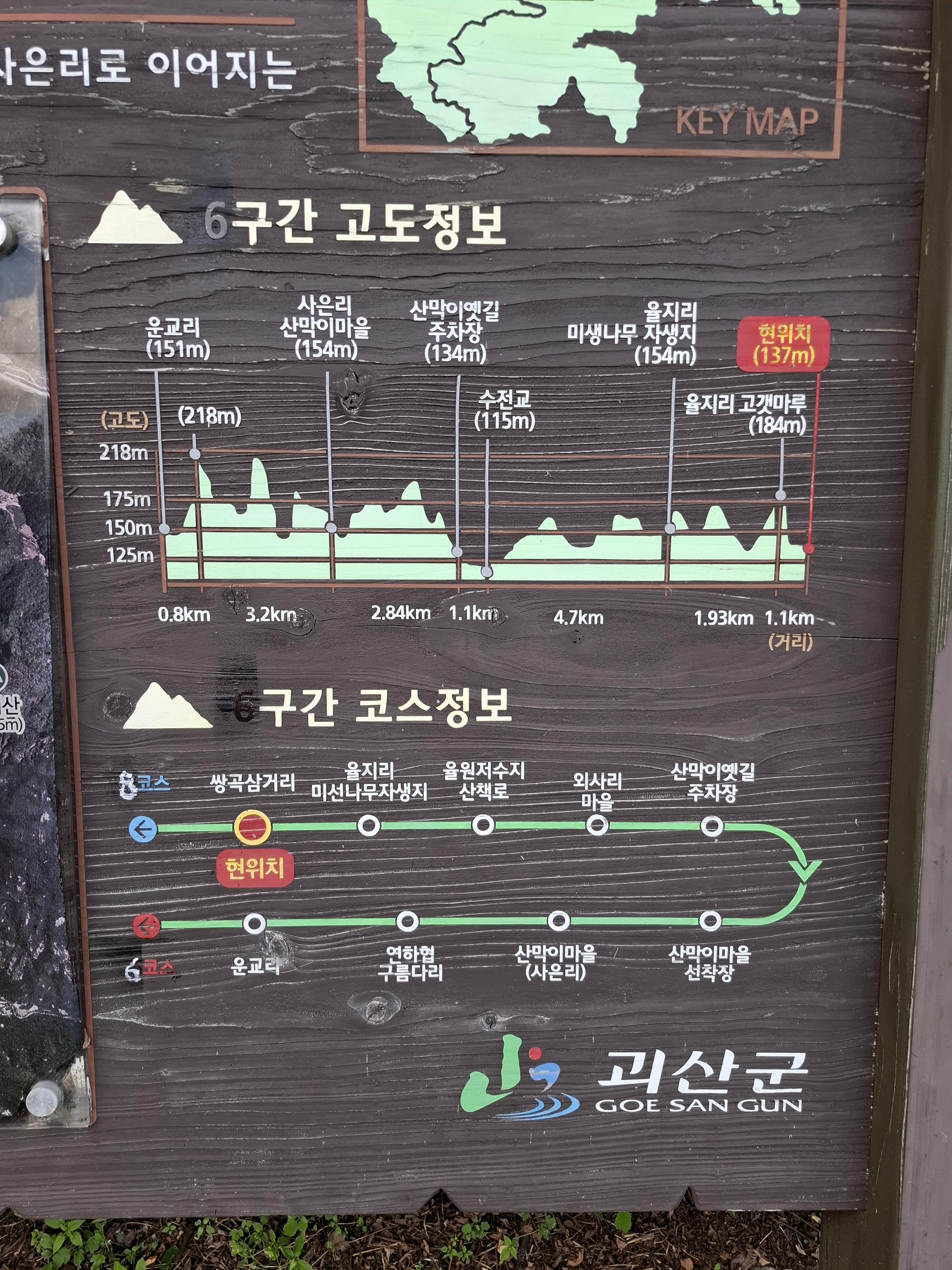 속리산 둘레길 7구간 쌍곡삼거리 이정표