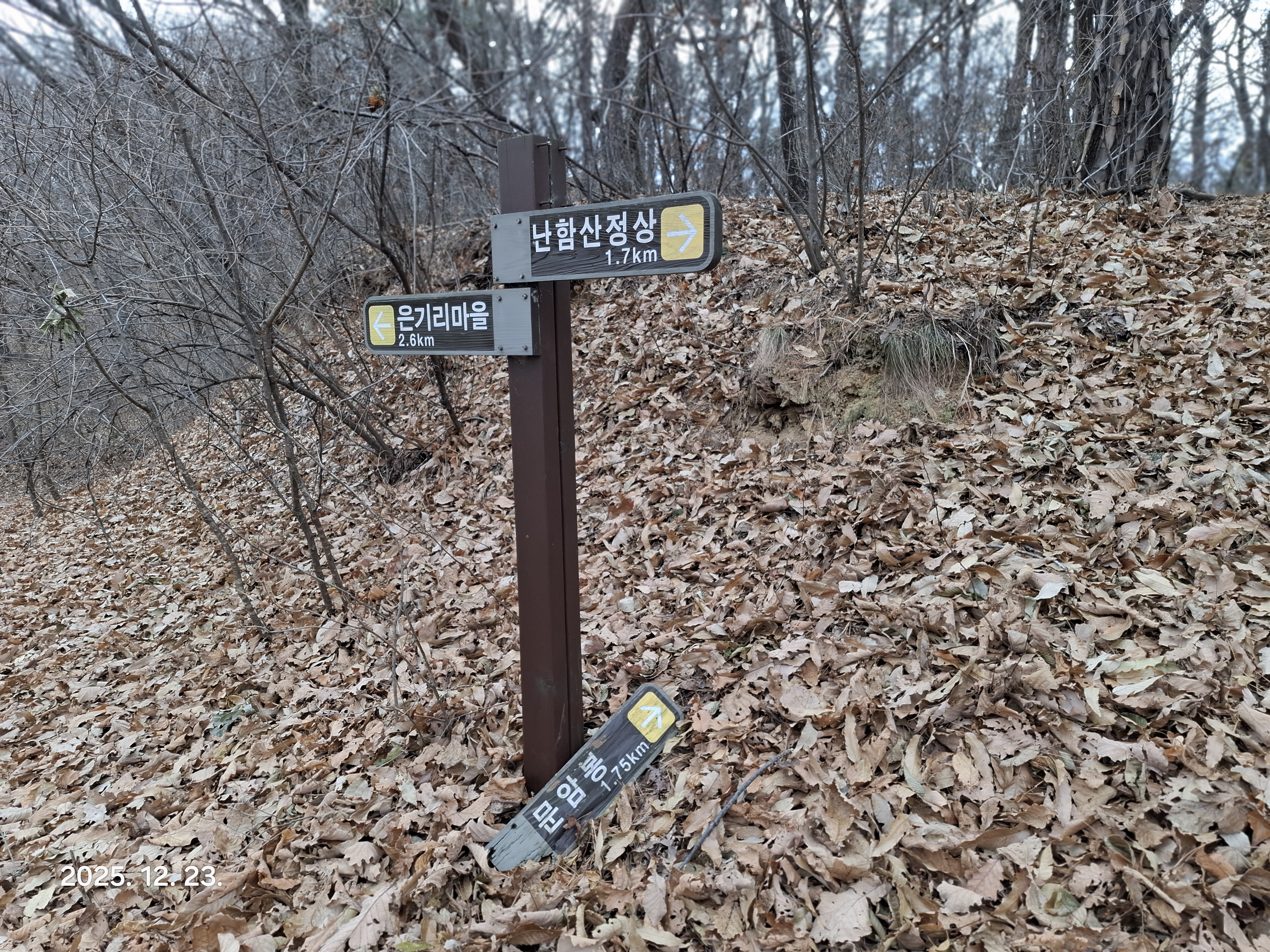 난함산-문암봉-구화산 산길은 정비를 잘 해 놓았다. 그러나 낙엽이 많아 조심스럽다.
