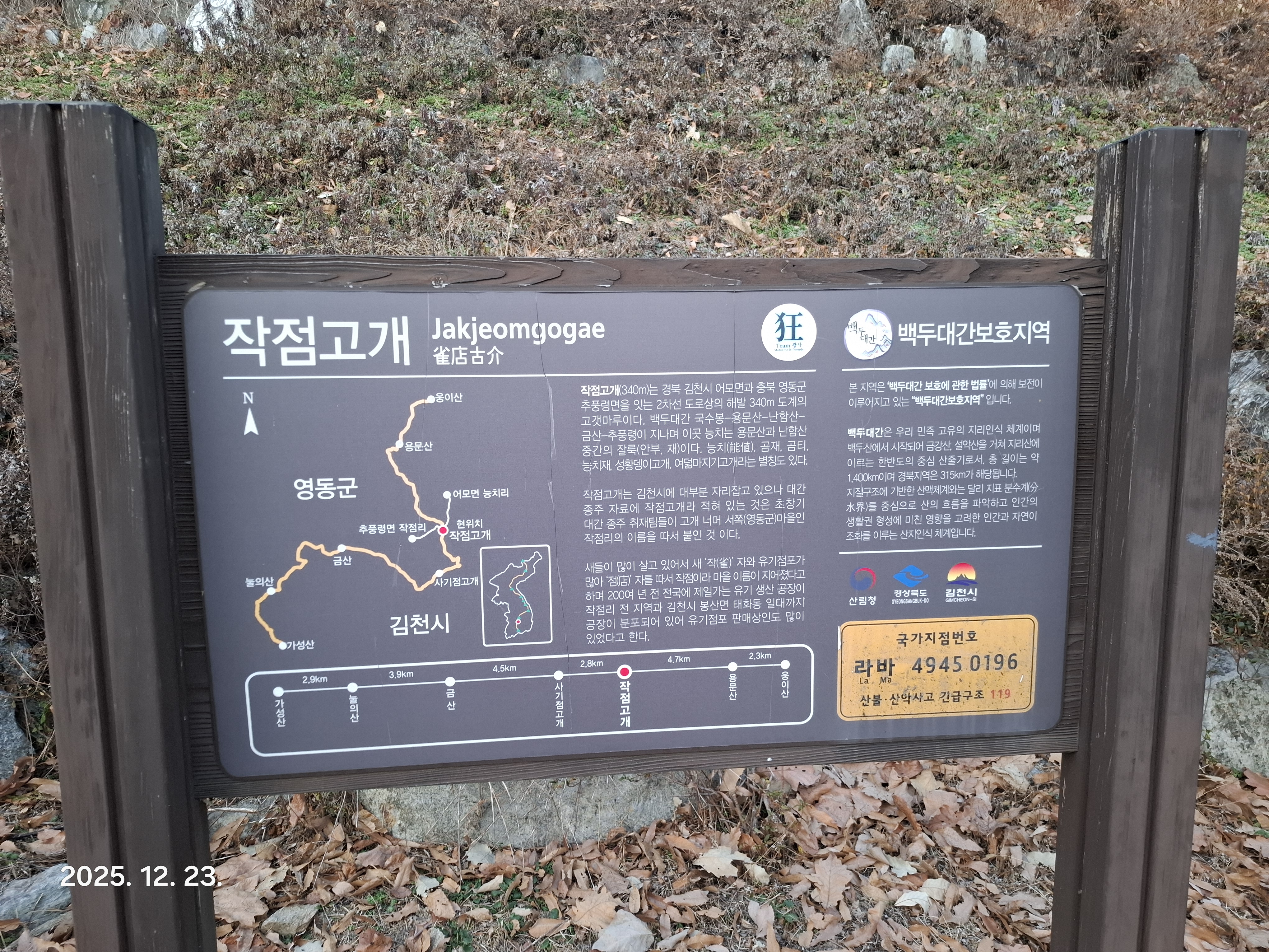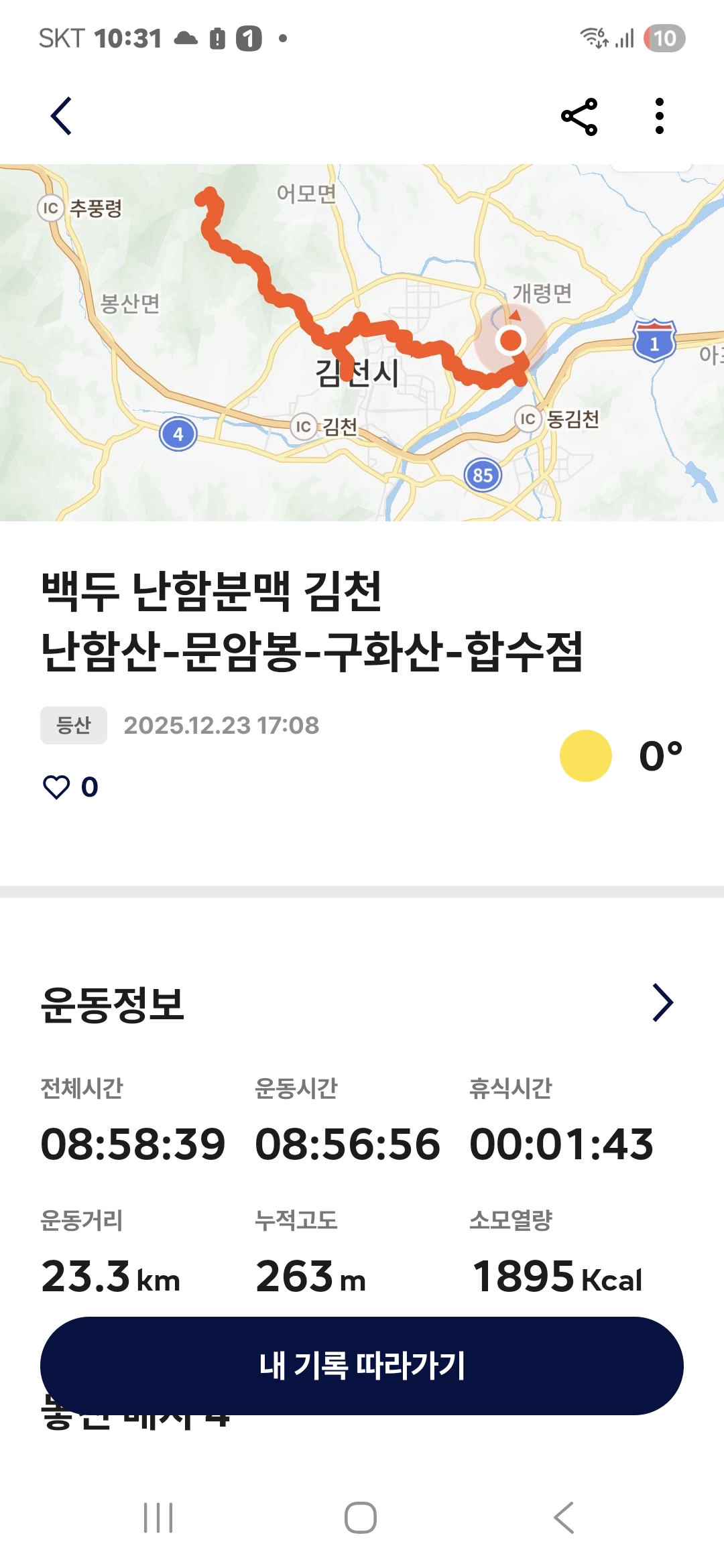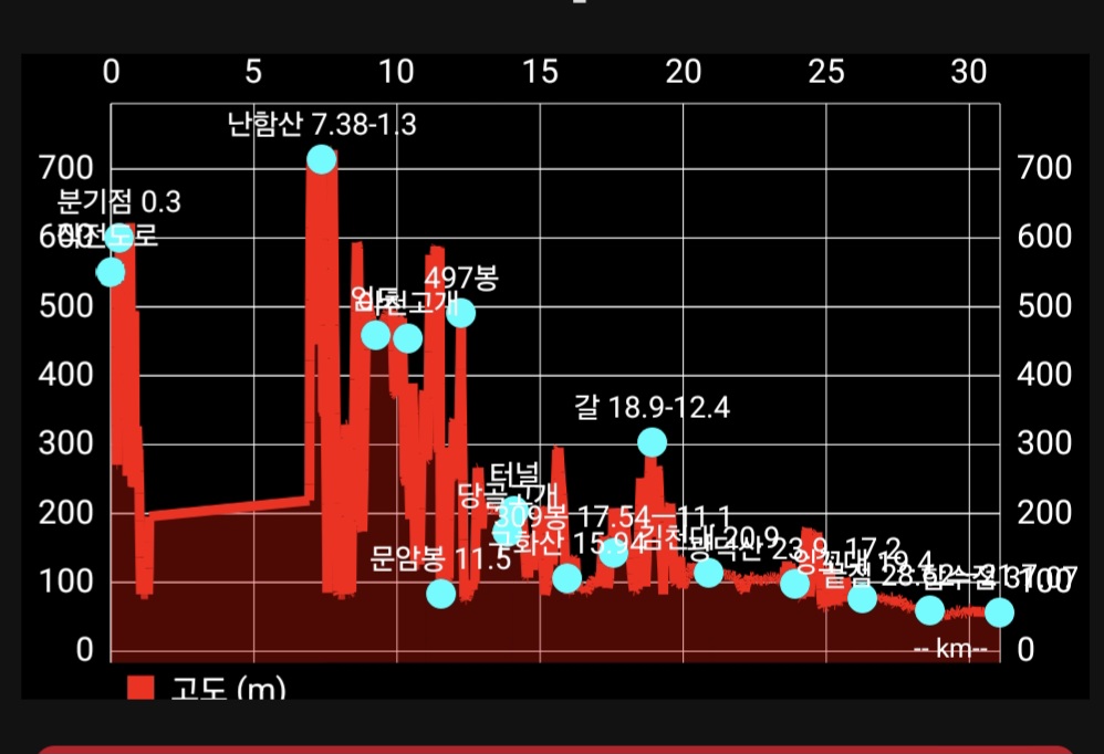 들머리; 경북 김천시 봉산면 상금리 산2-1 새롬중-->난함산도로 최적100k/1;25/4,900 무료105k/2;05