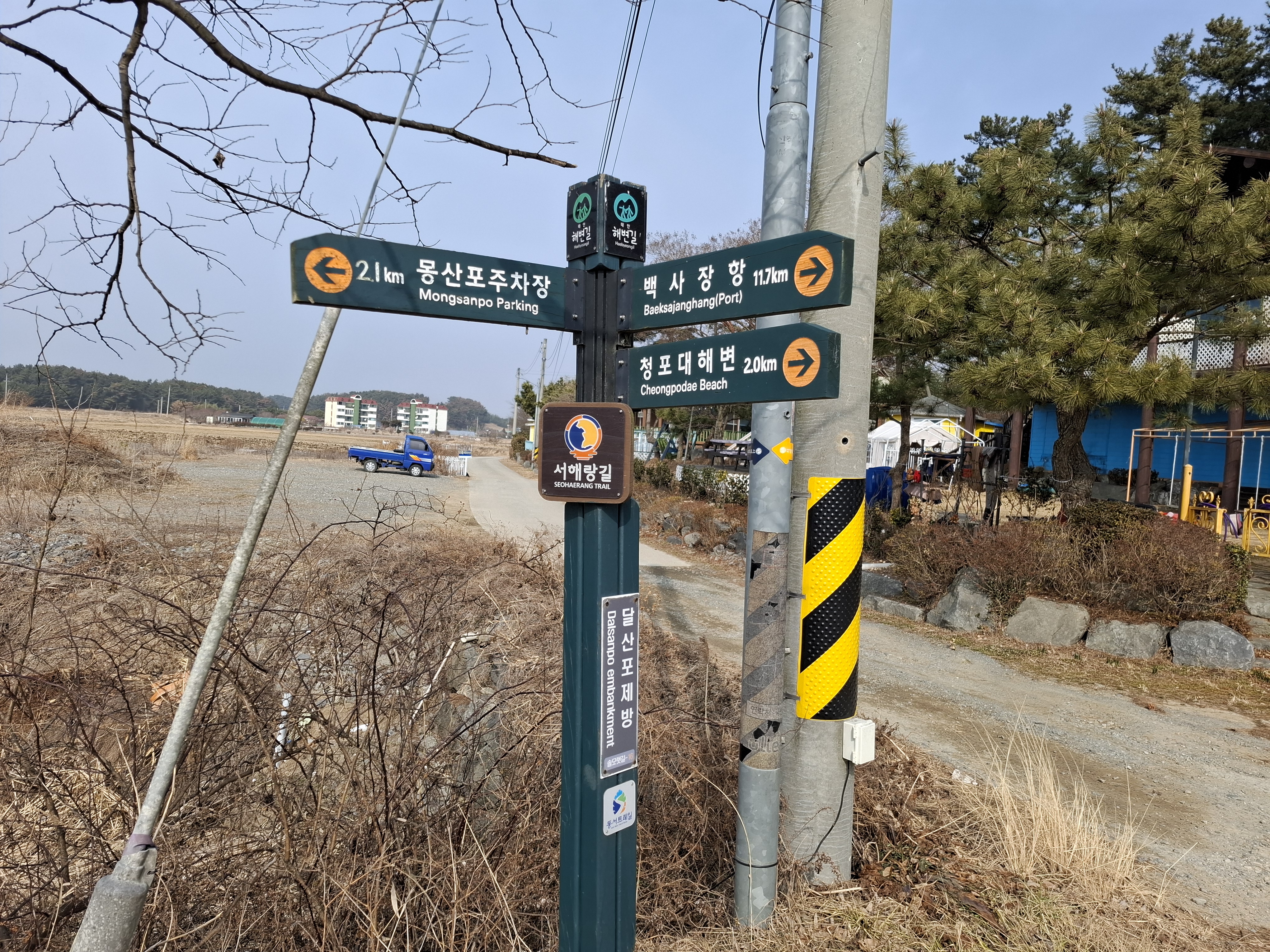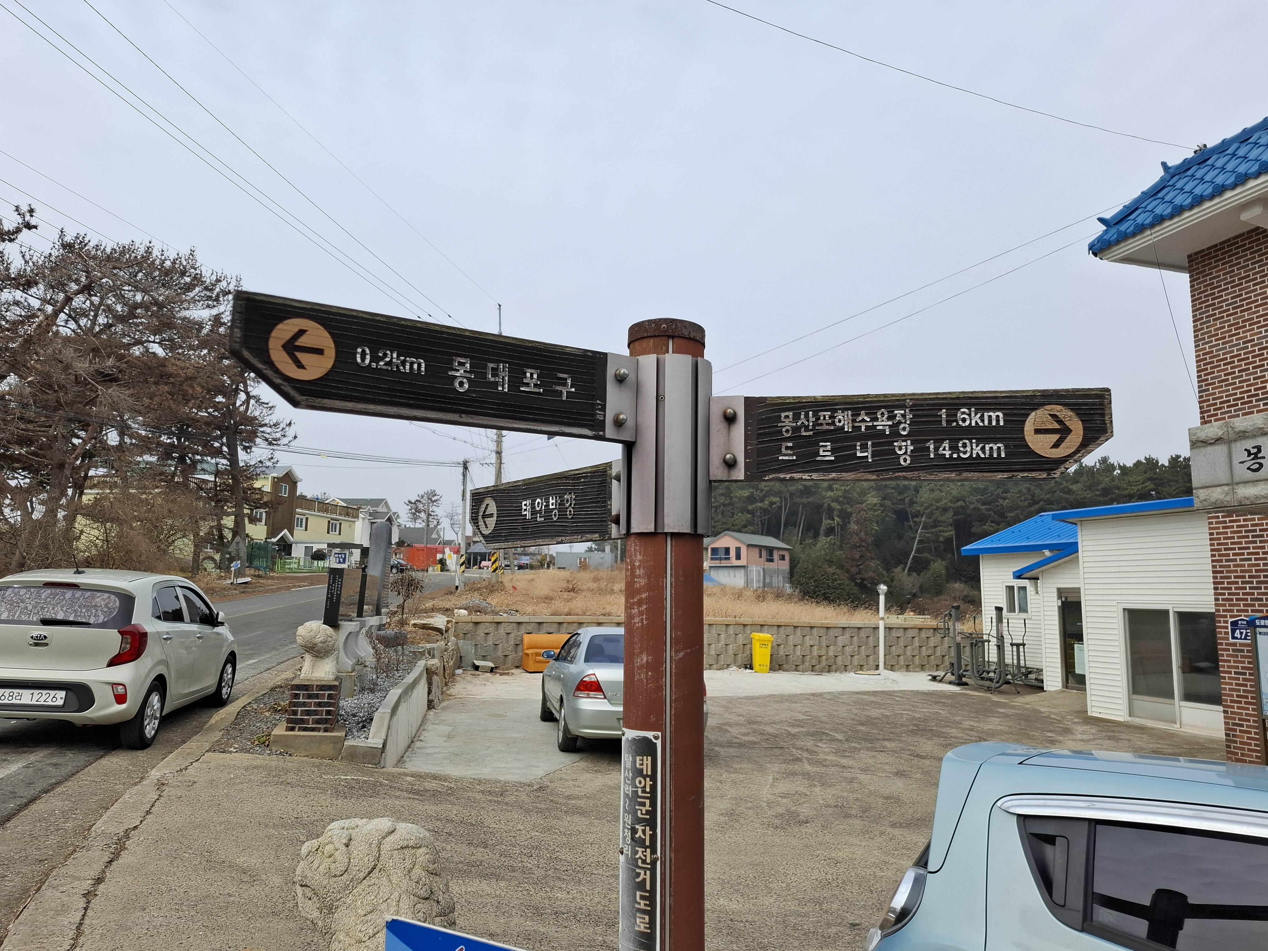 1;52 신장리. 몽산포항2.2k/백사장항13.8k/몽산포주차장1.7k
