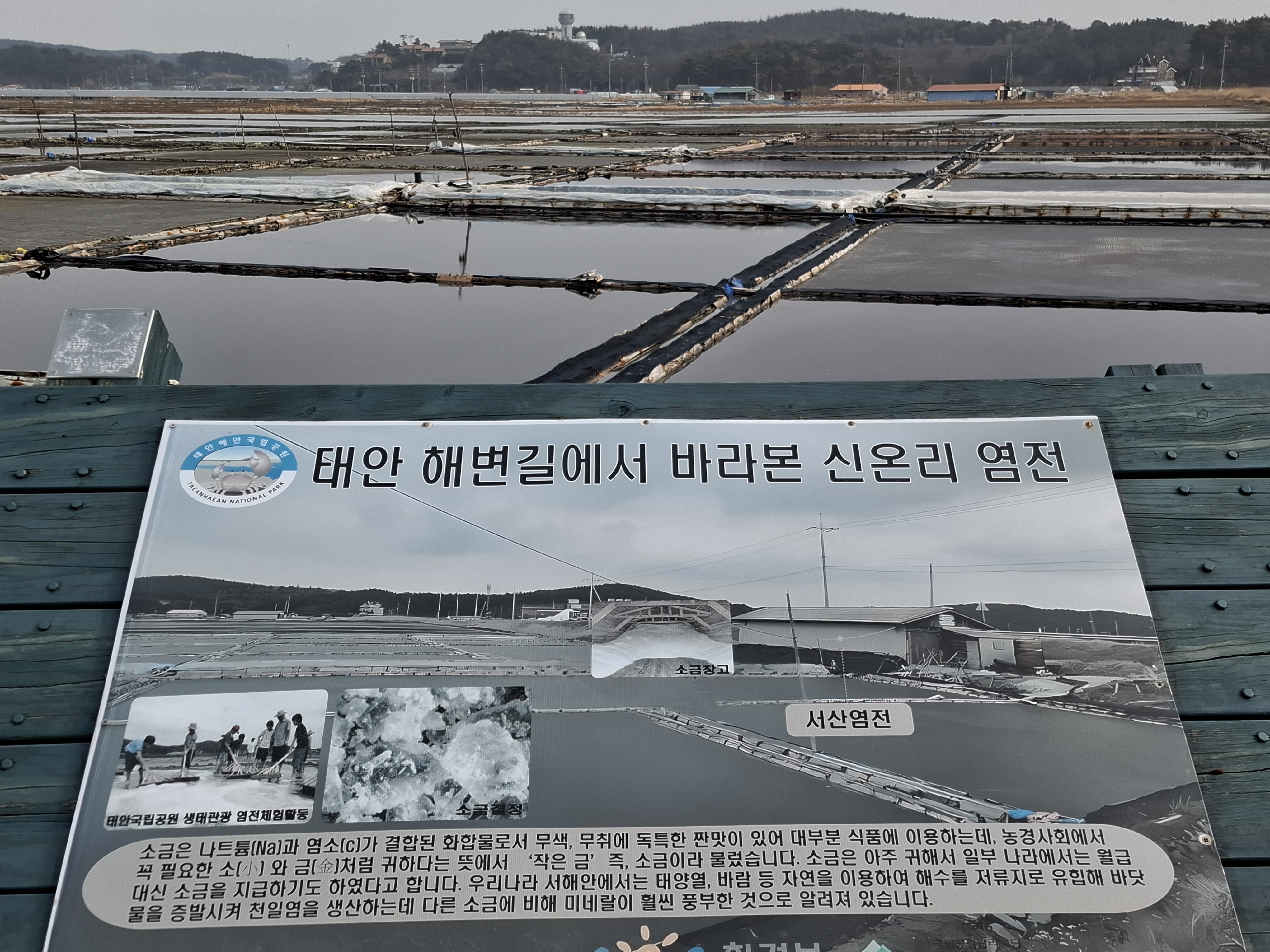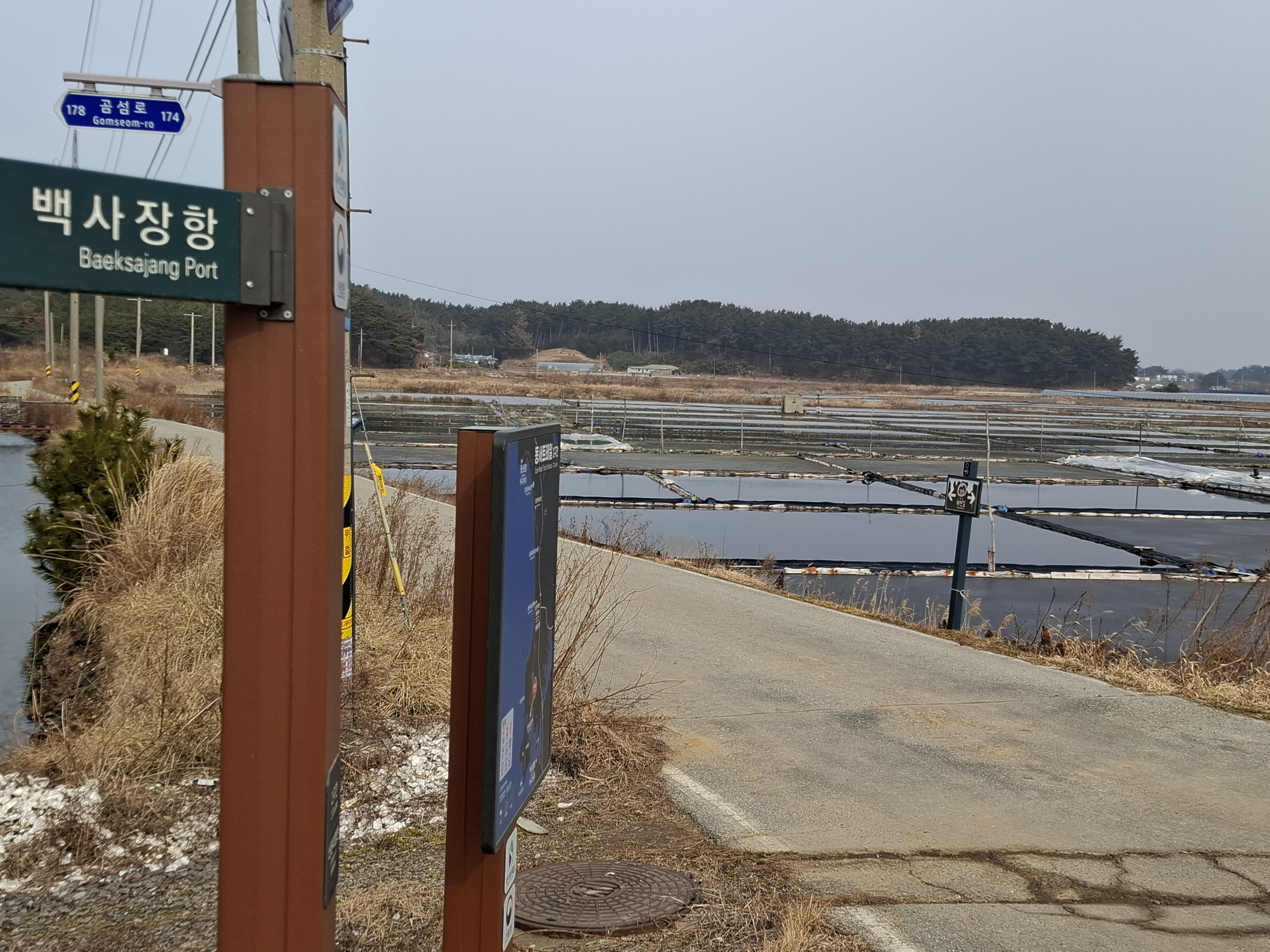 11;00 신온리 염전. 약1km 우회길 끝. 곰섬길은 시간상 멀다. 솔모랫길 백사장항3.5k/몽산포항12.5k