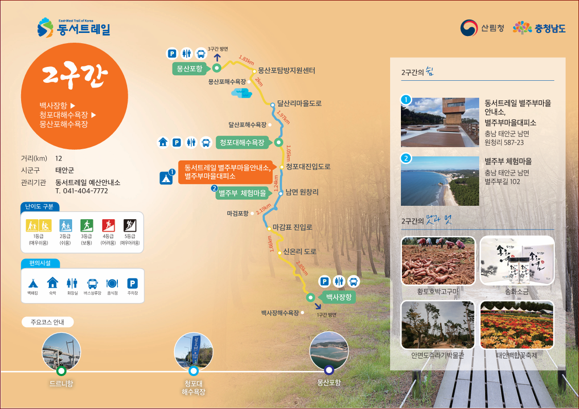 | 서쪽에서~동해 까지 동서 트레일 2구간 백사장~몽산포항 안내 |