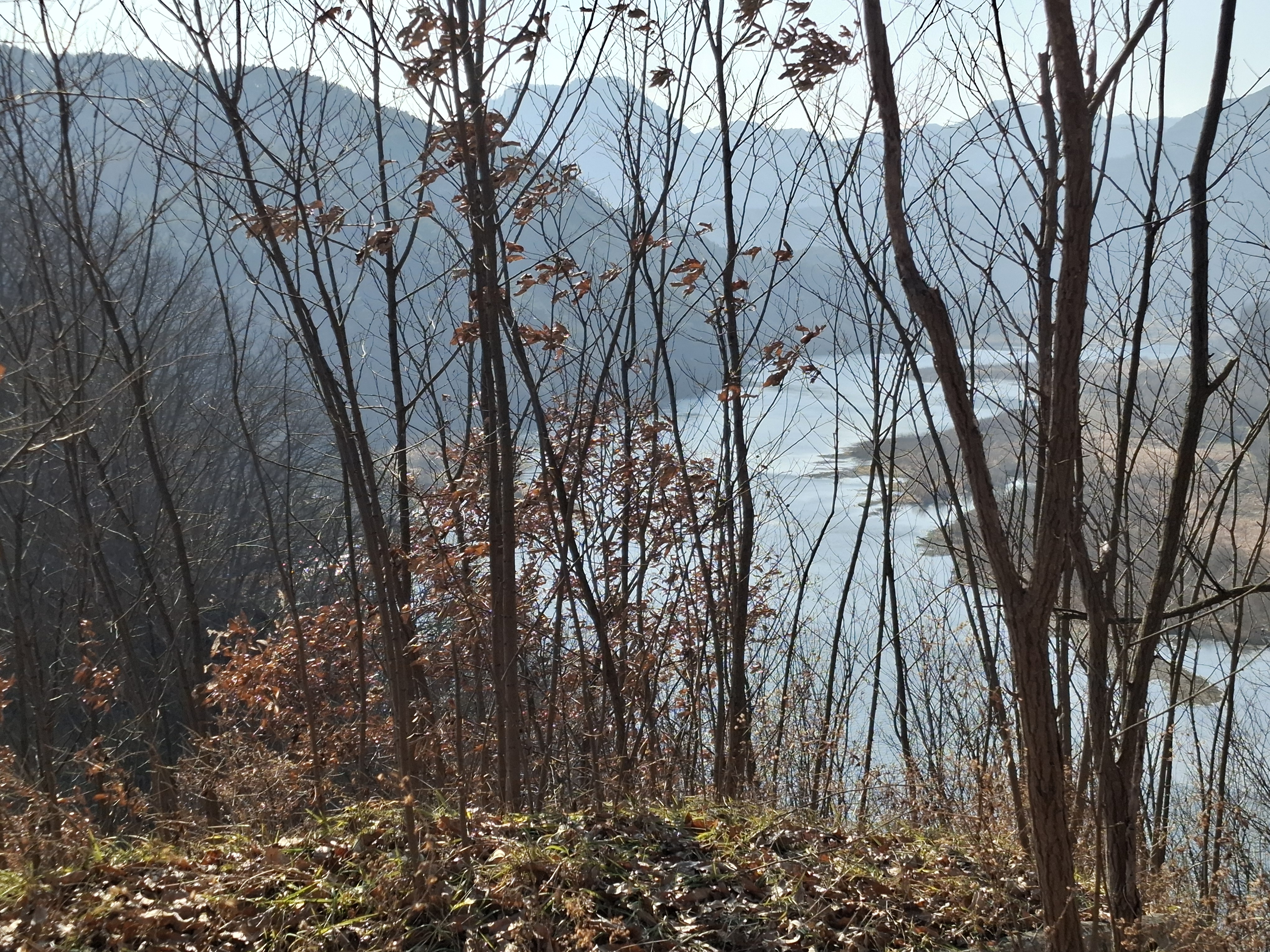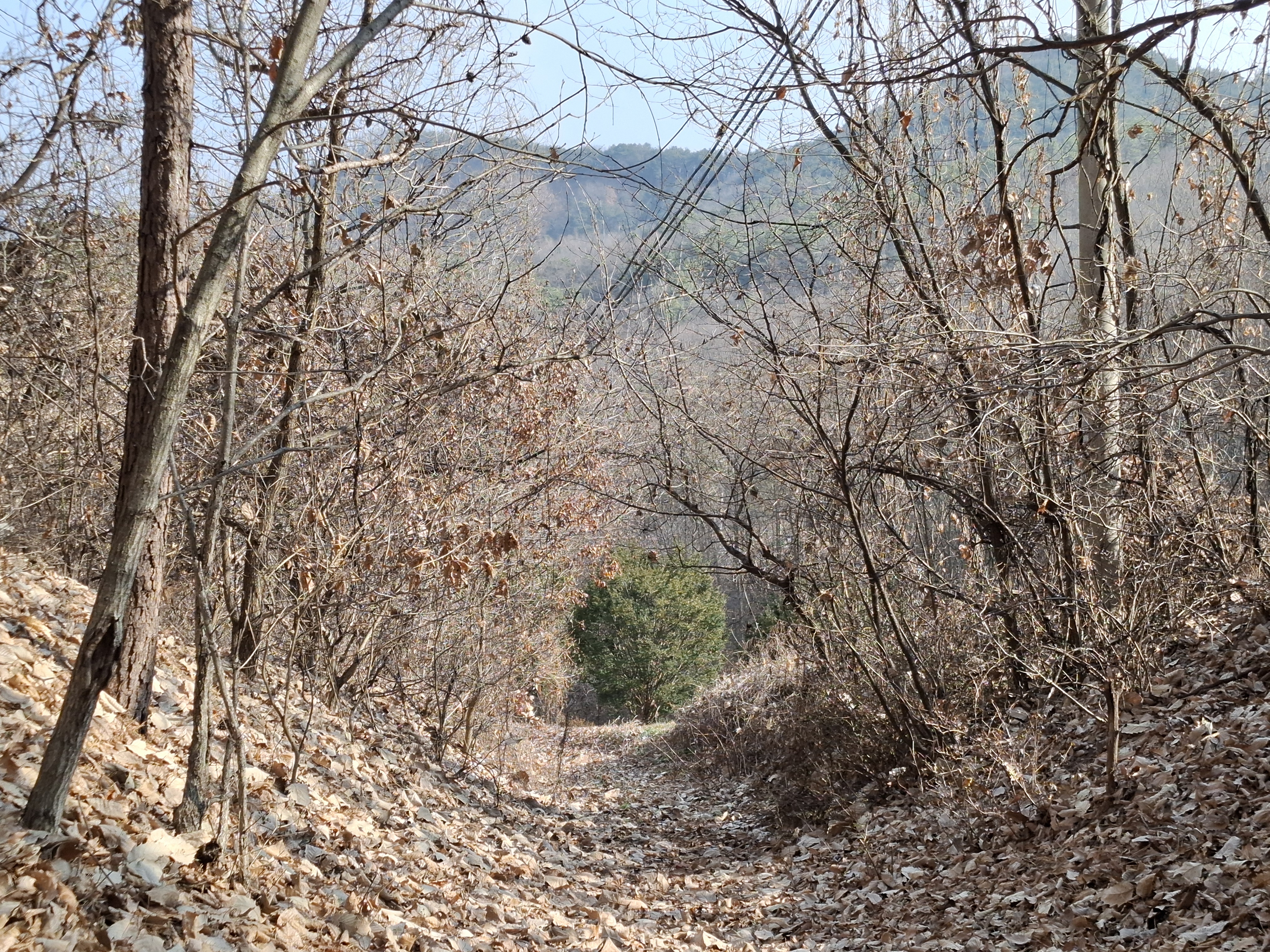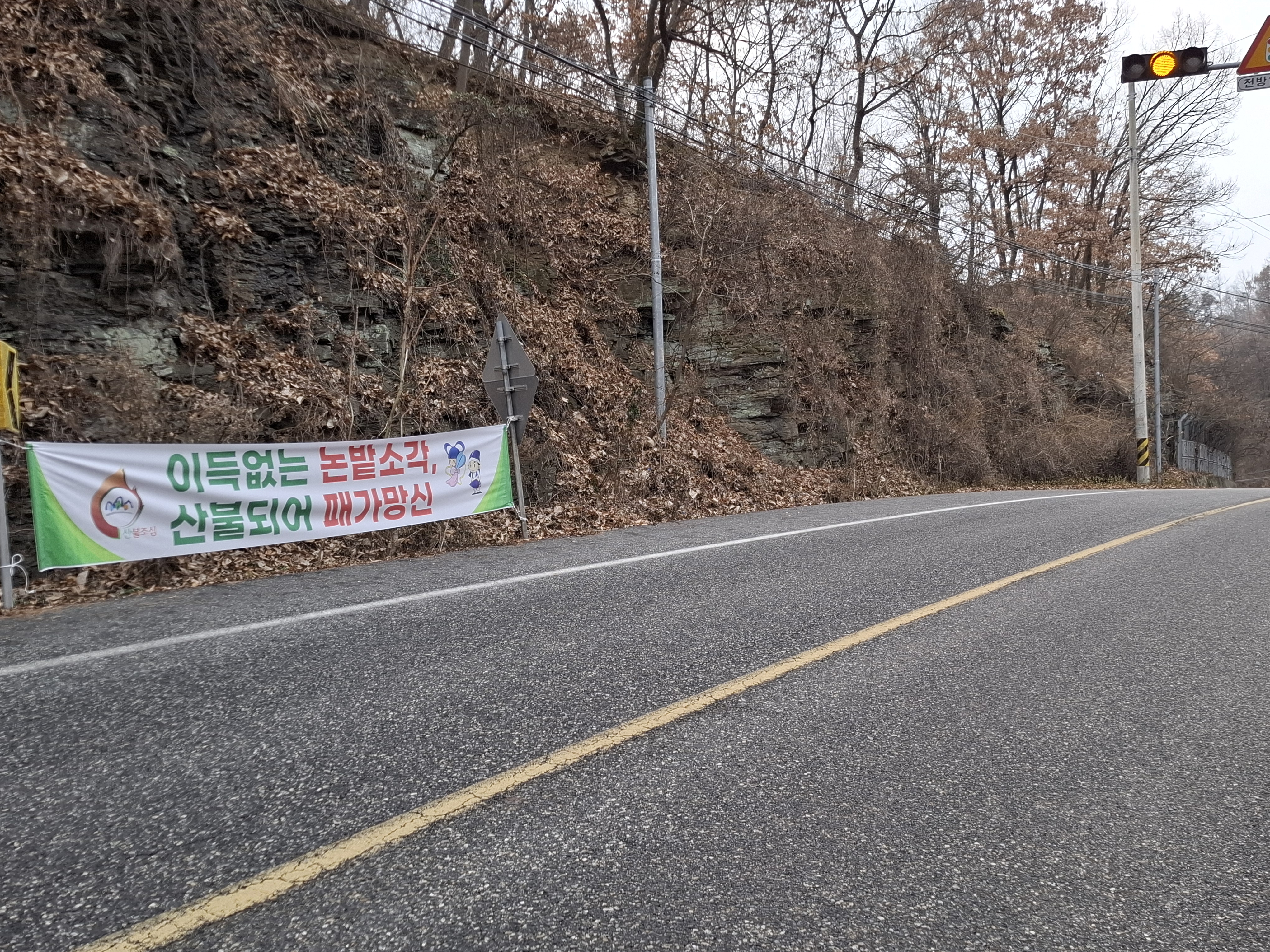 4번 국도 절개지; 급경사 낙엽길을 다리떨며 내려간다.