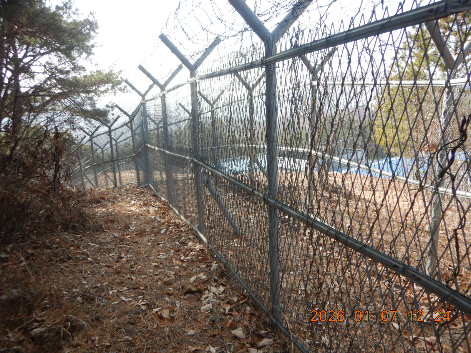 12;24 정수장 울타리. 좌측길로 내려간다.