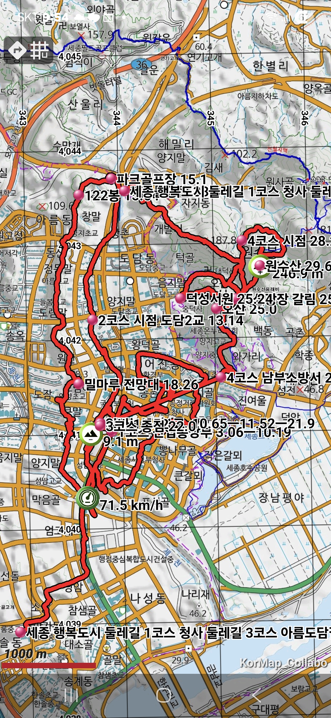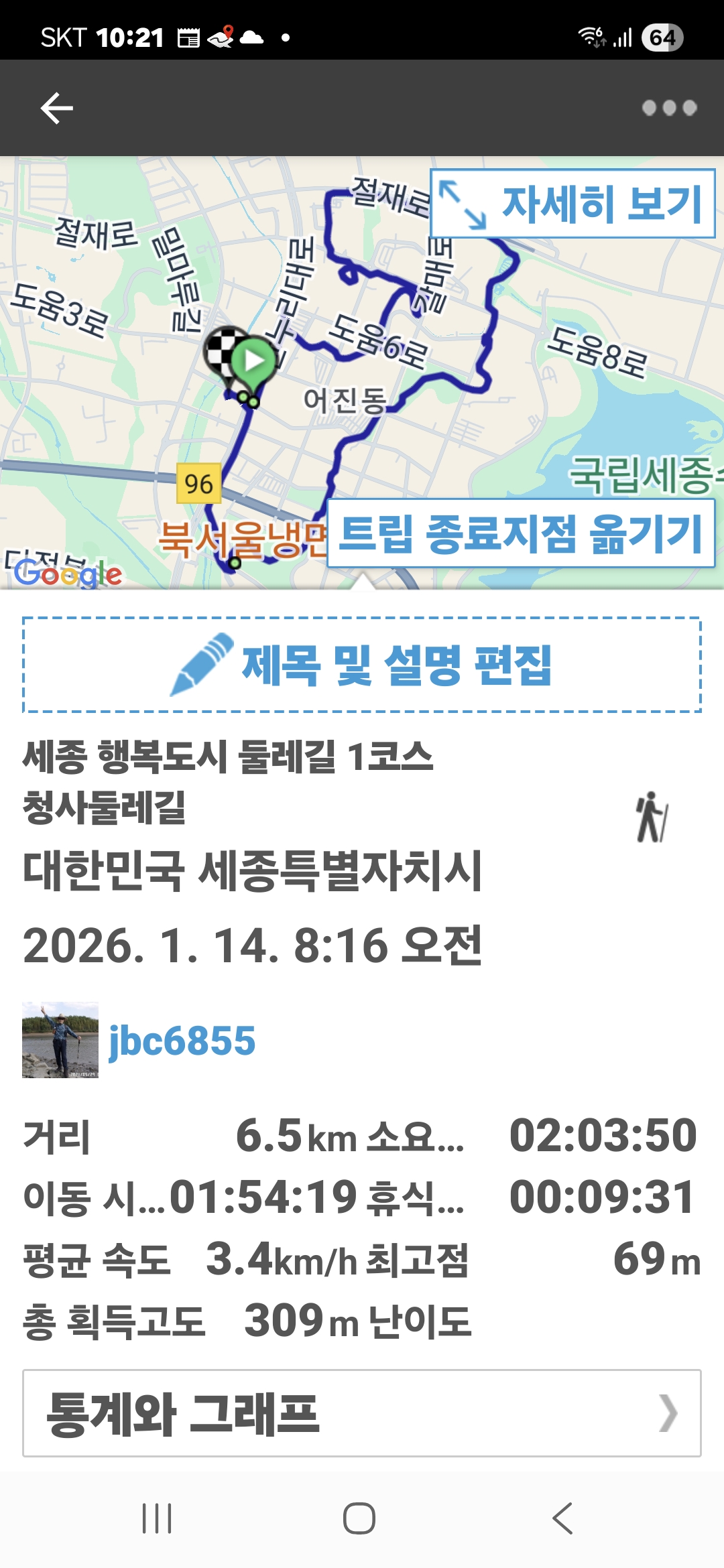 | 세종 행복도시 둘레길 3코스 아름도담길; 도림2교-세종 충대병원-파크골프장-밀마루 전망대-어진1교-도림2교 (1) | 2026.01.20 |