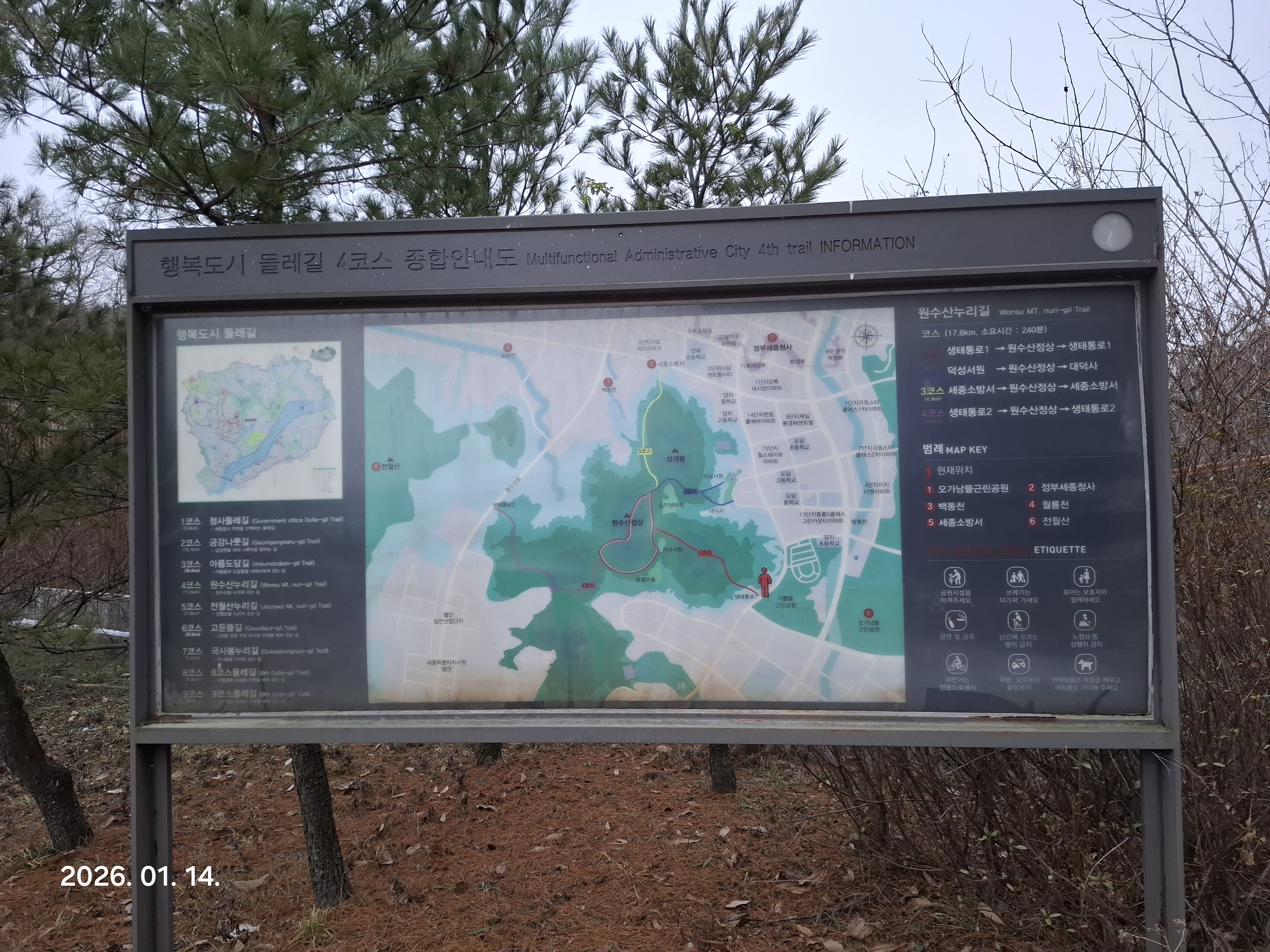 | 세종 행복도시 둘레길 1코스 청사둘레길; 청사터미널-청사체육관-푸른뜰-어진뜰-맑은뜰-청사터미널 (0) | 2026.01.20 |