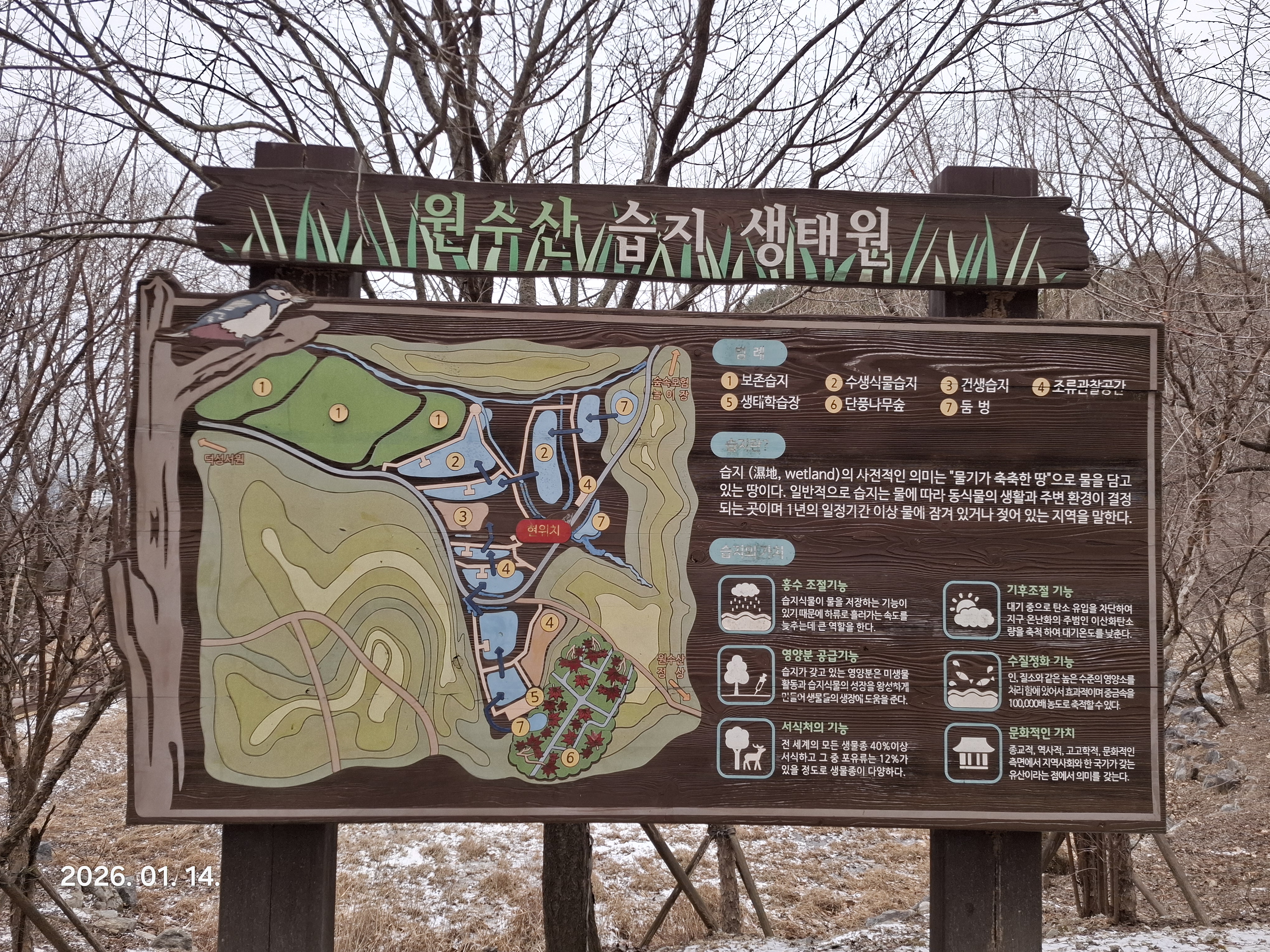 1. 일시; 2026년 1월 14일 수요일 맑다. 춥다.(영하8도~영상2도). 바람이 있어 체감은 더하다.