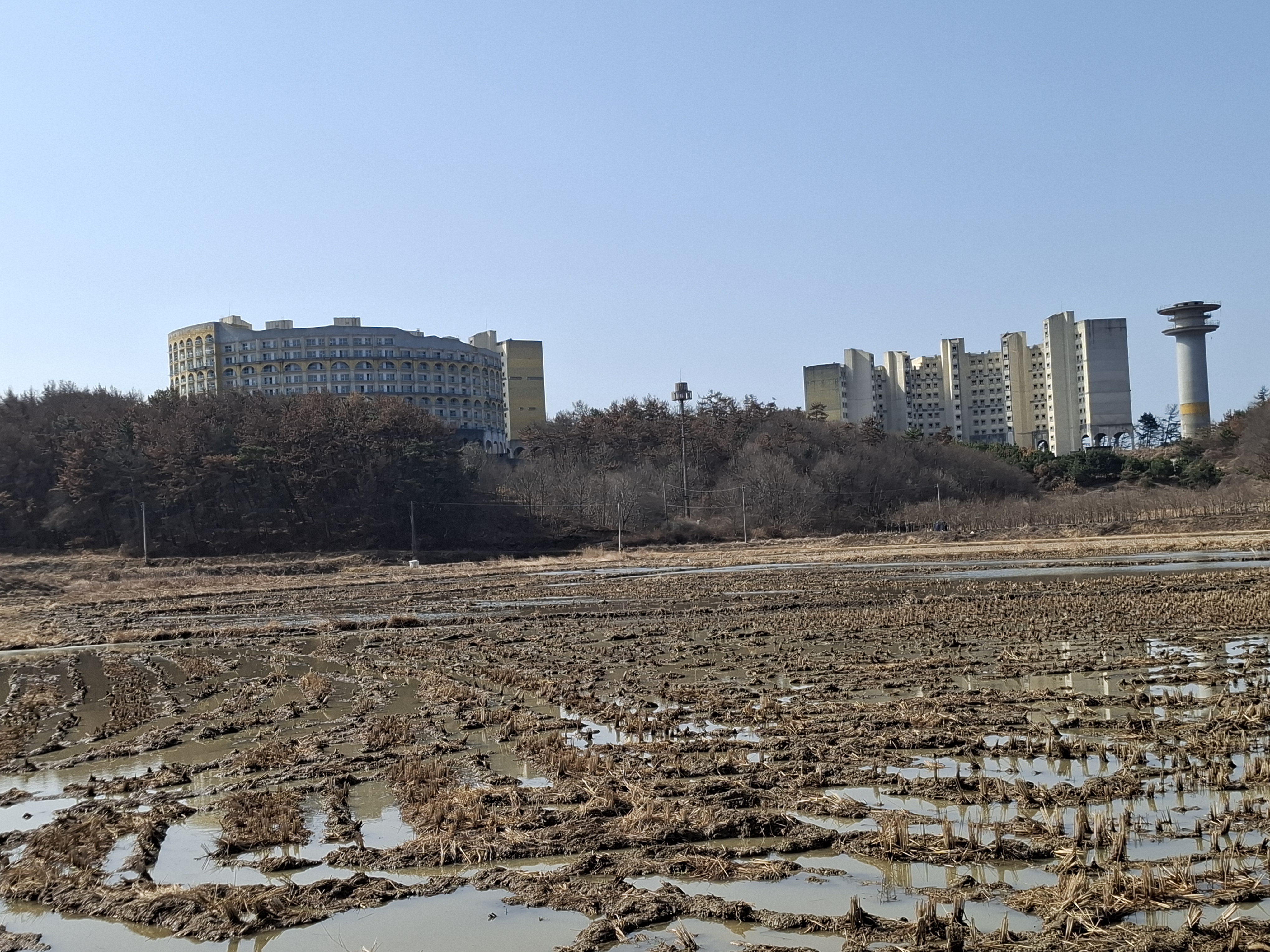 리조트 건설에 부도난 회사가 있어 폐허스러운 건물이 있다.