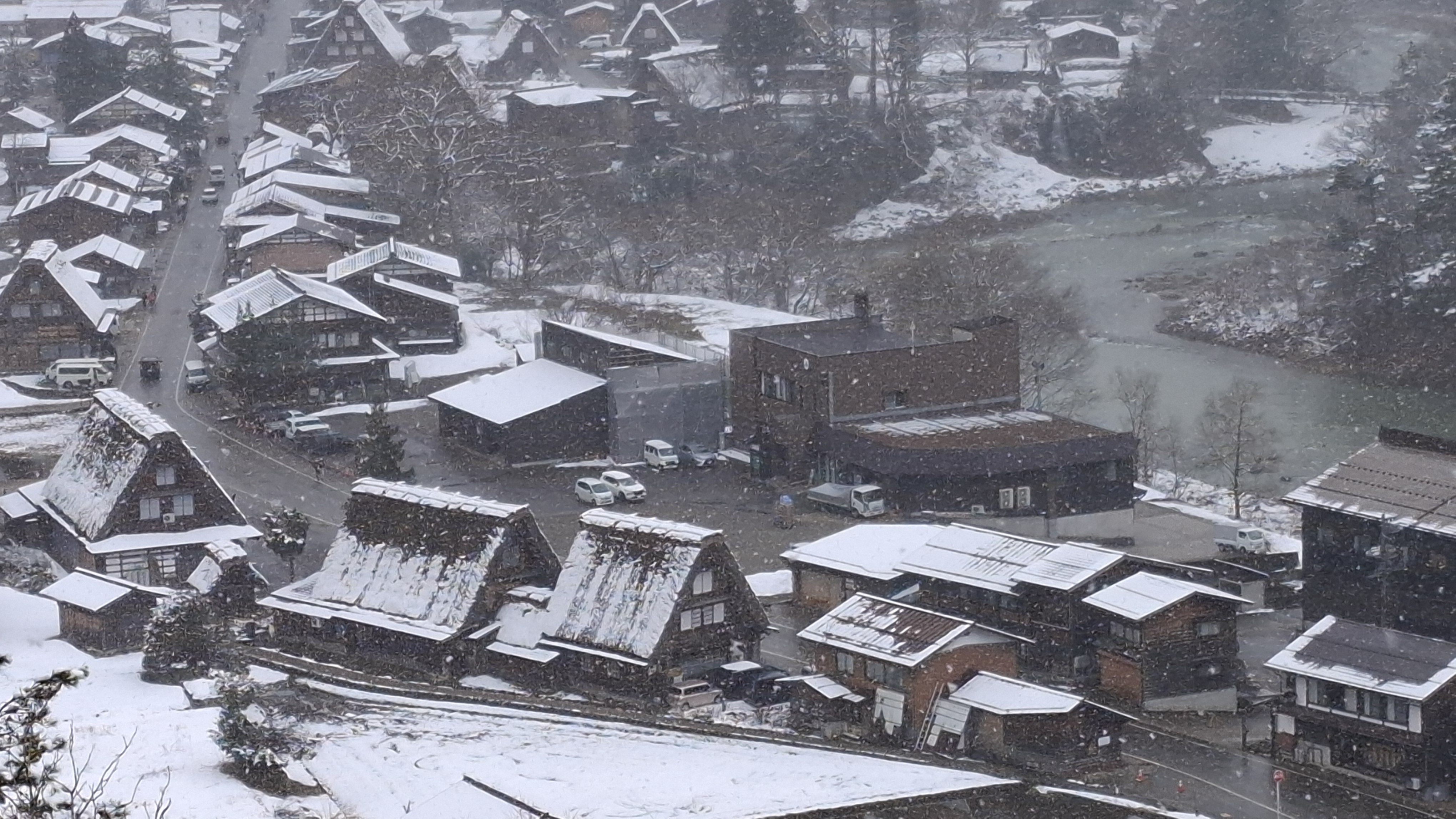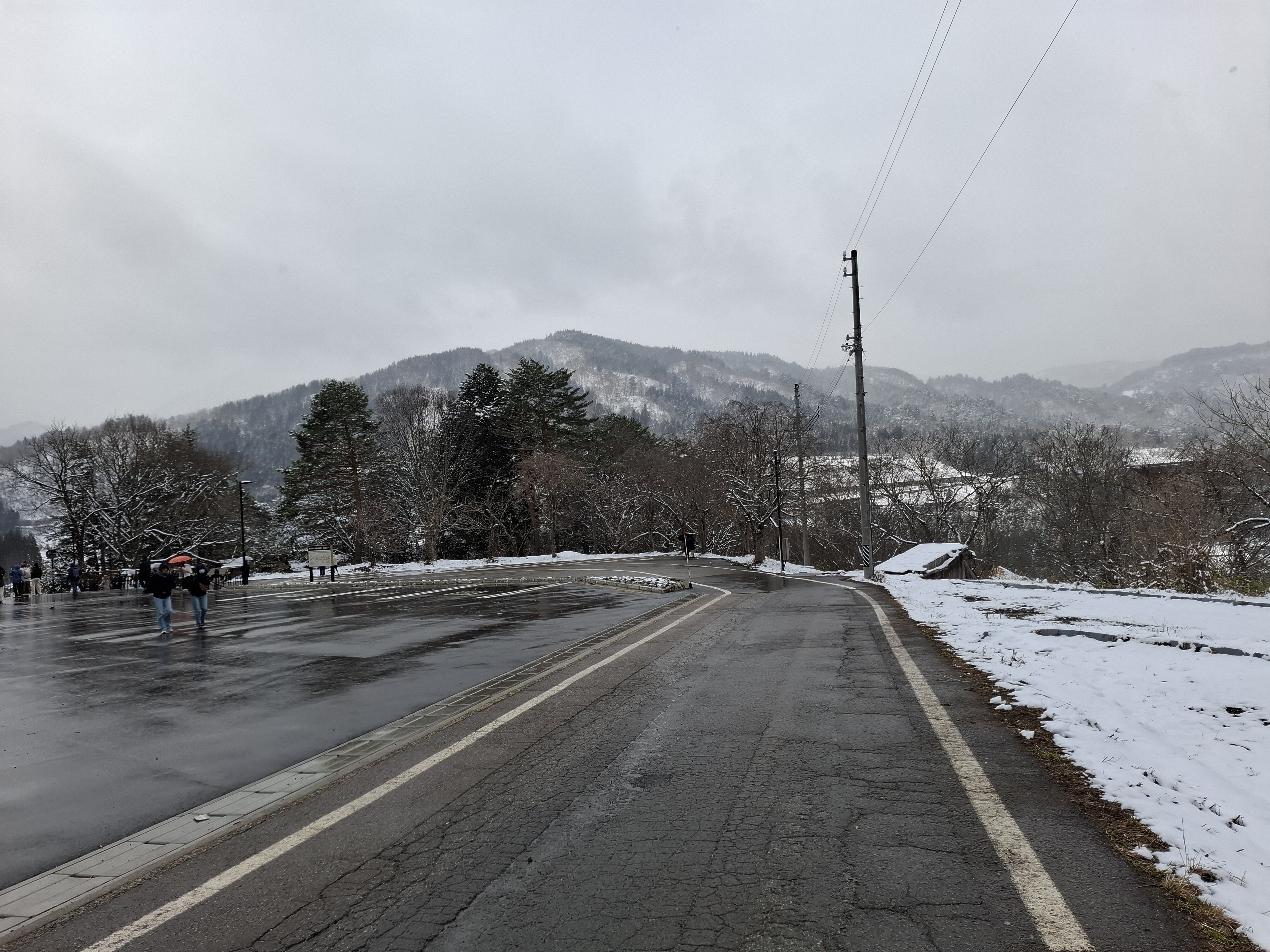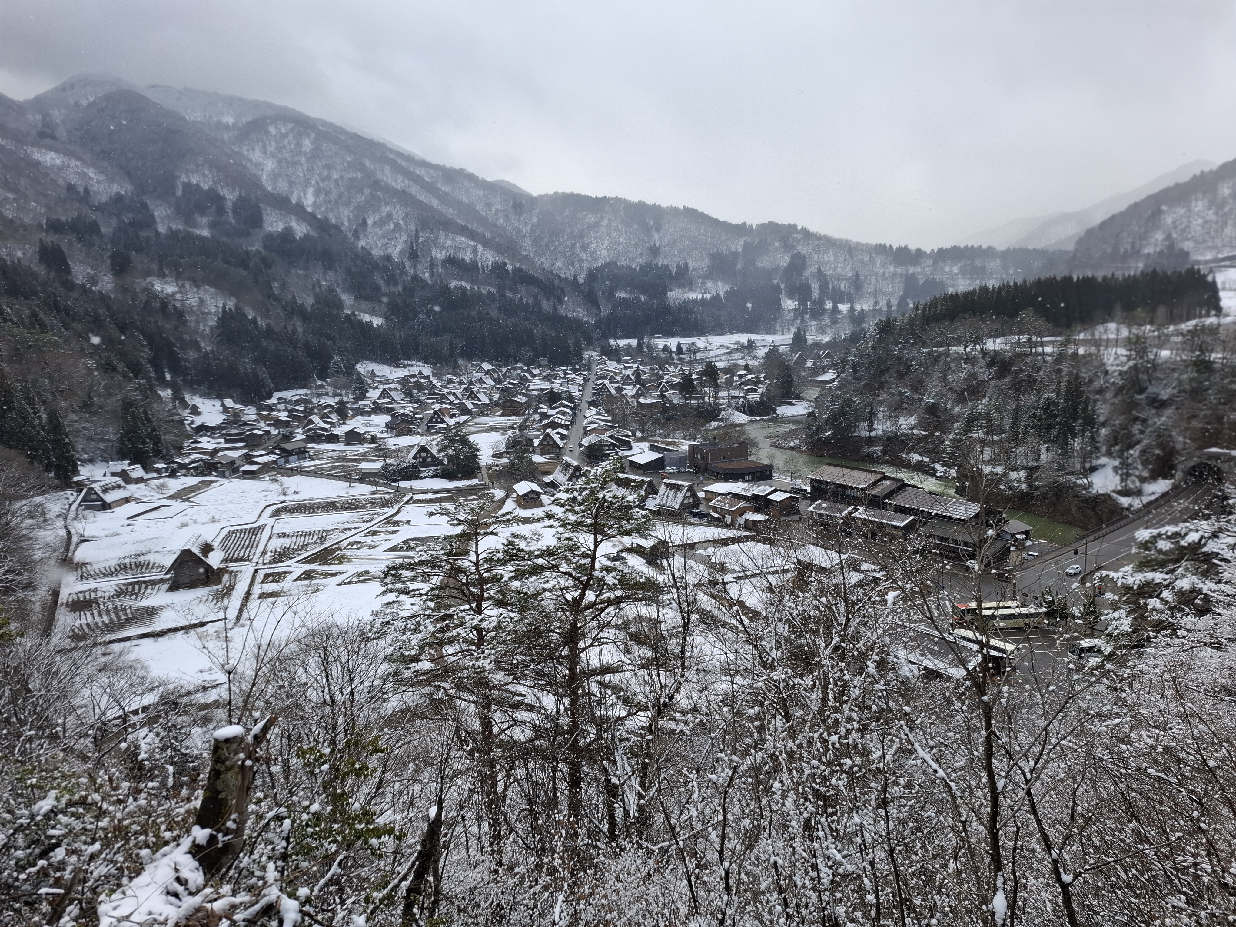 시라카와고 전망대. 눈이 있어야 보기 좋다고 하는데 눈이 내린다.