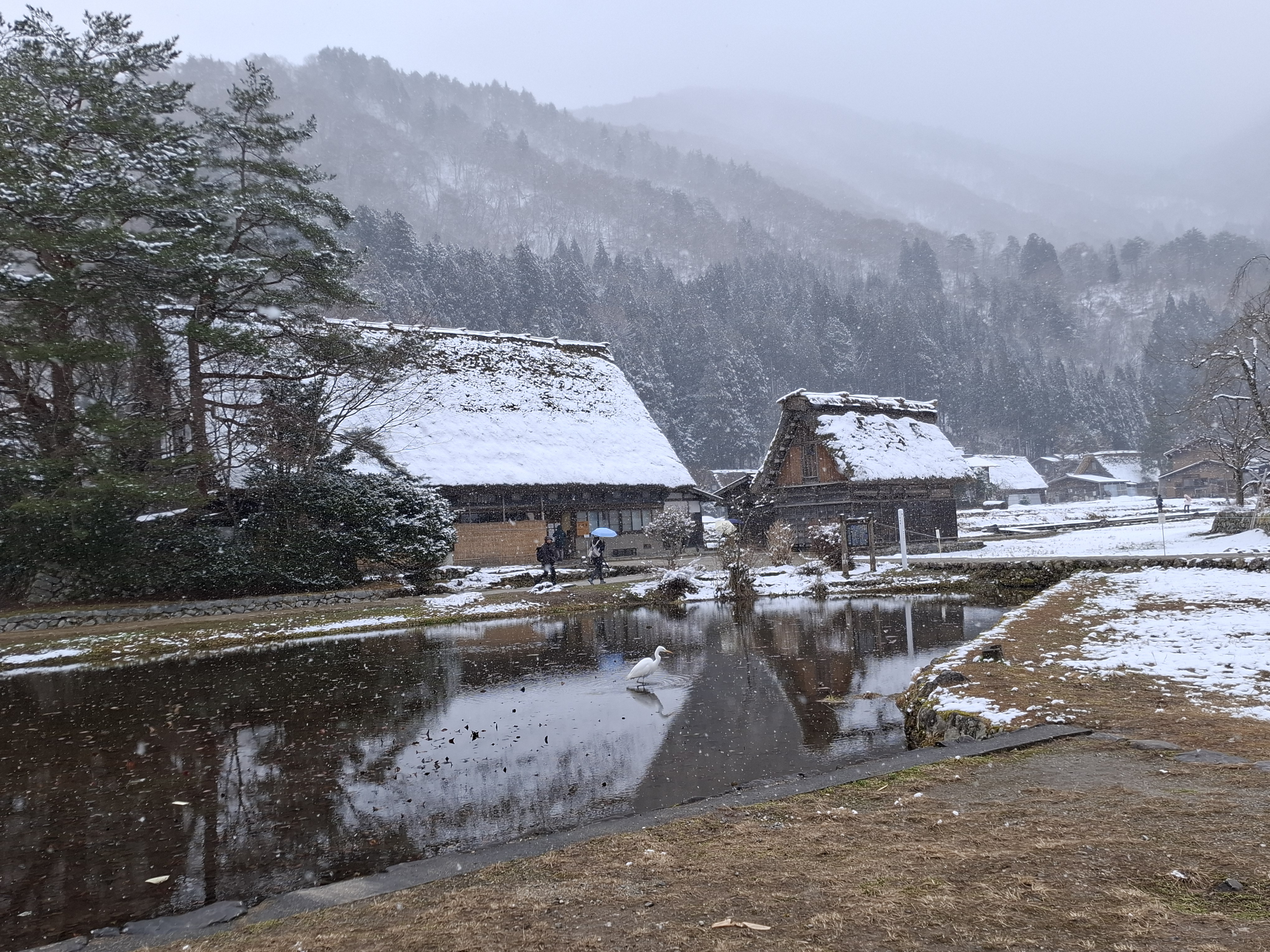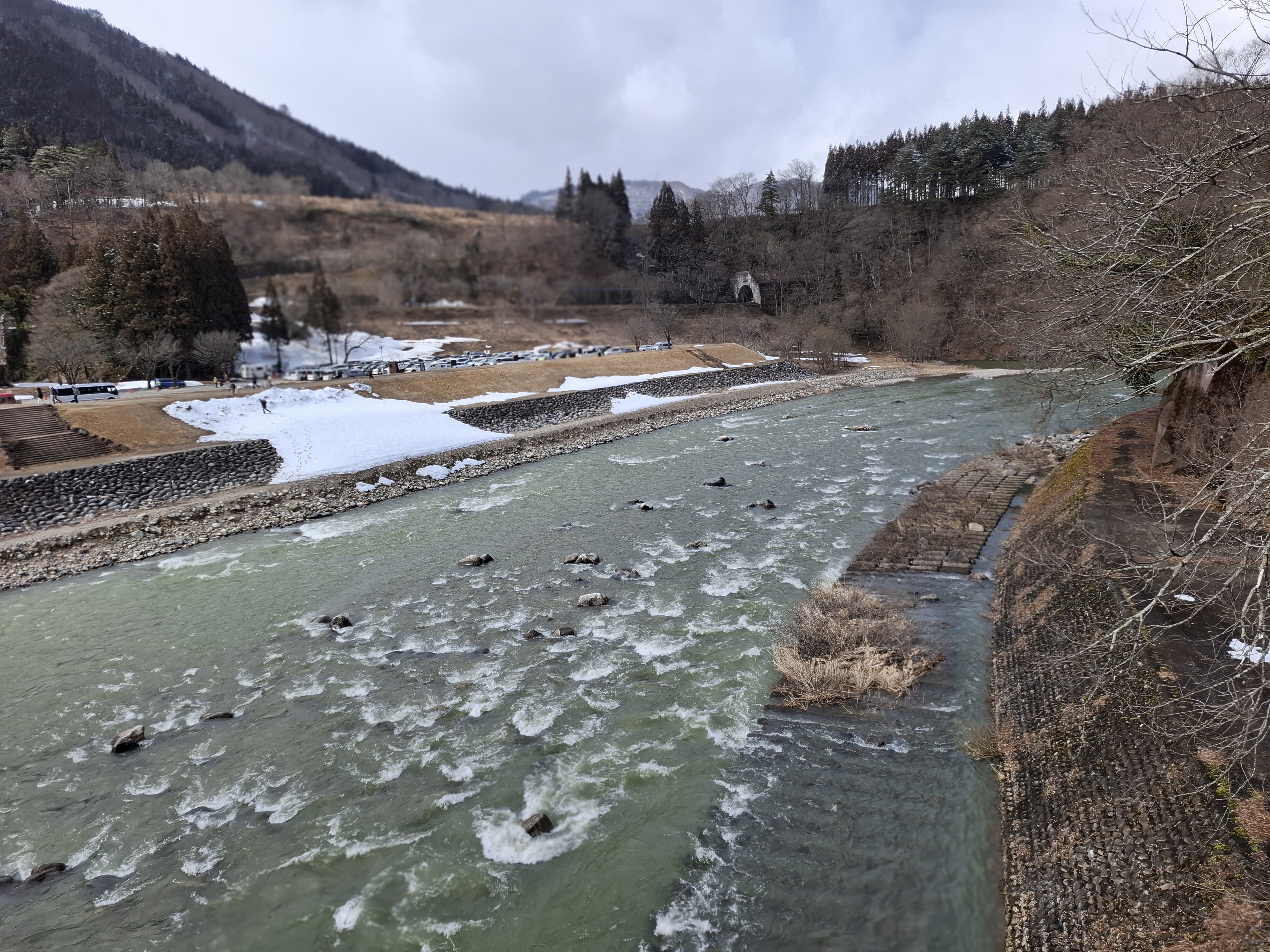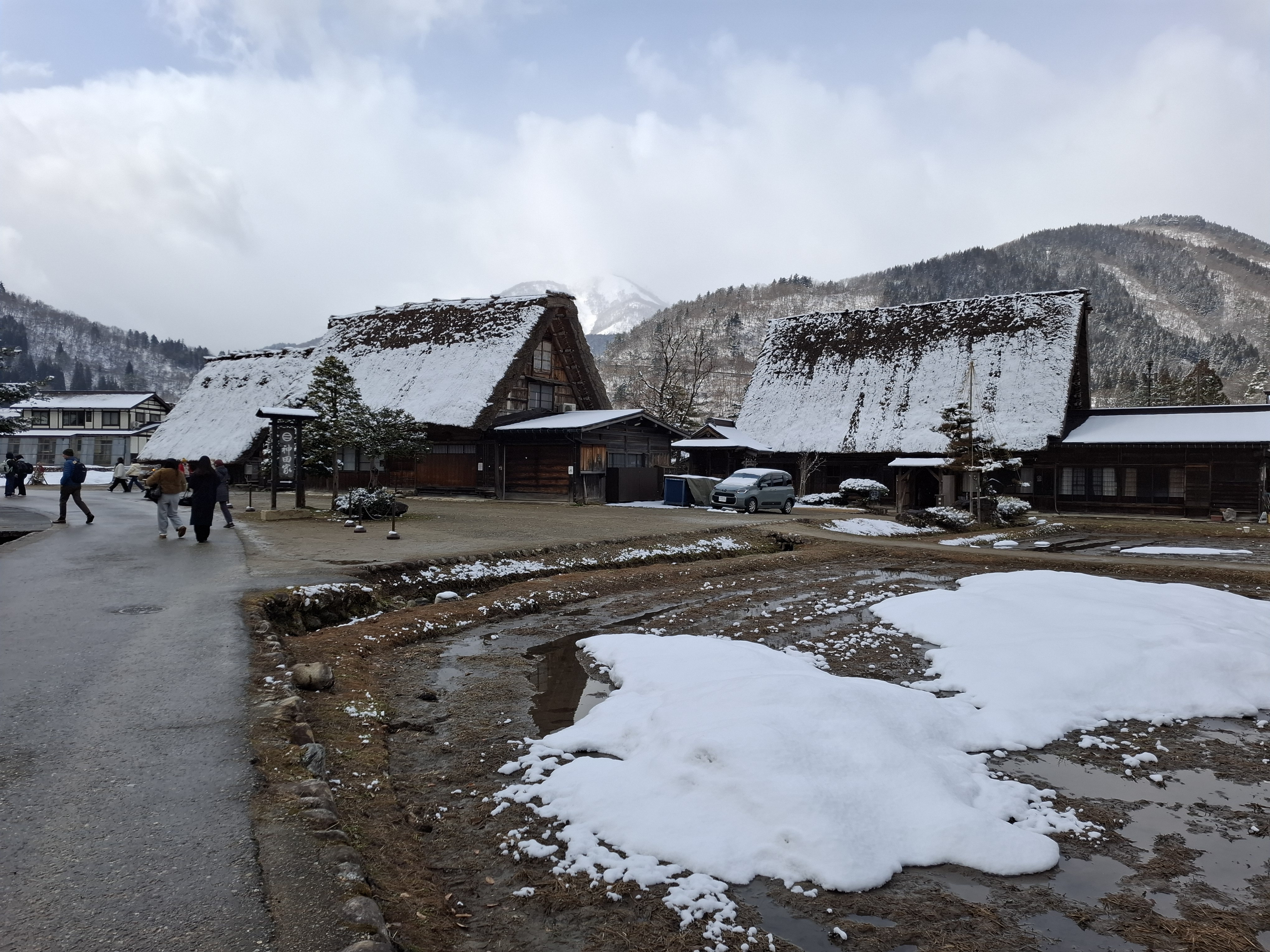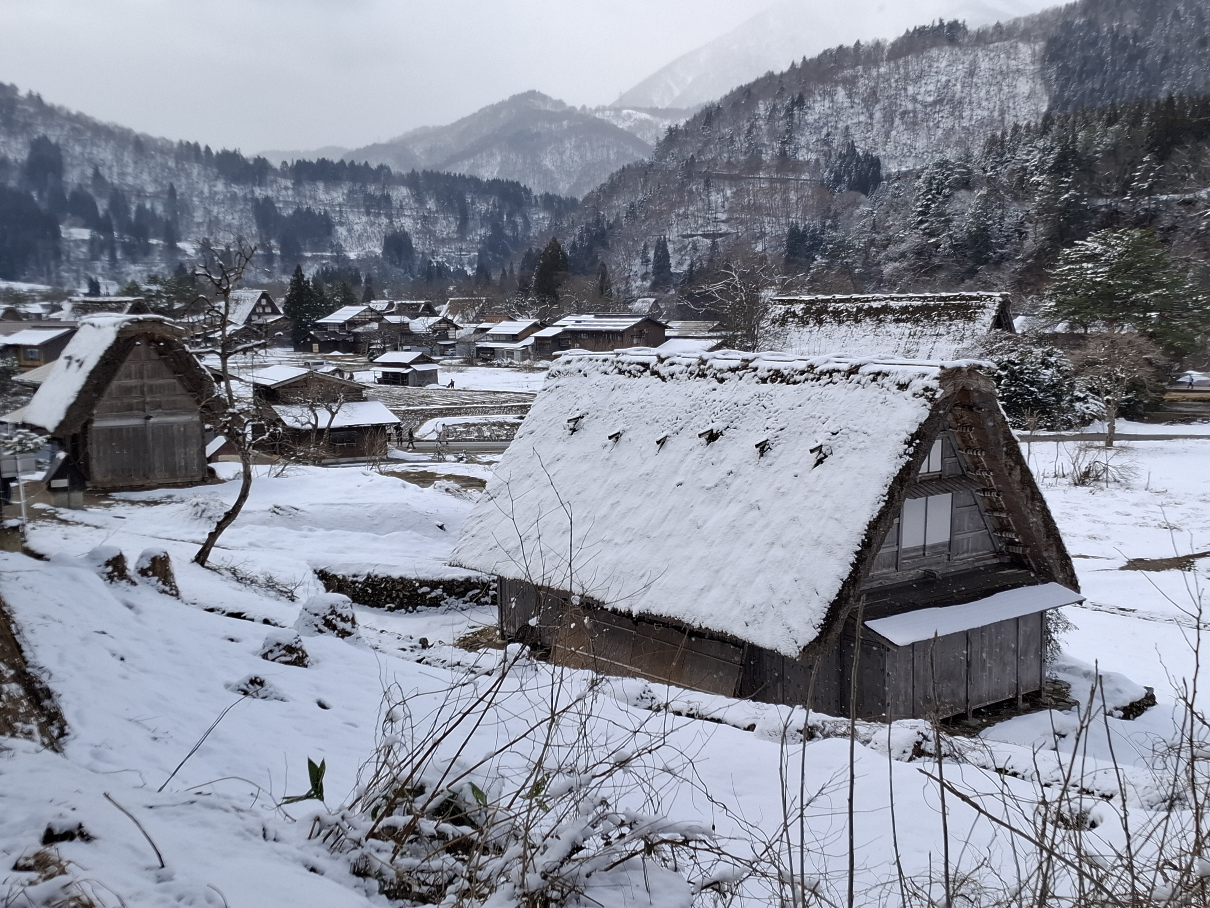 시라카와고 전망대. 눈이 있어야 보기 좋다고 하는데 눈이 내린다.