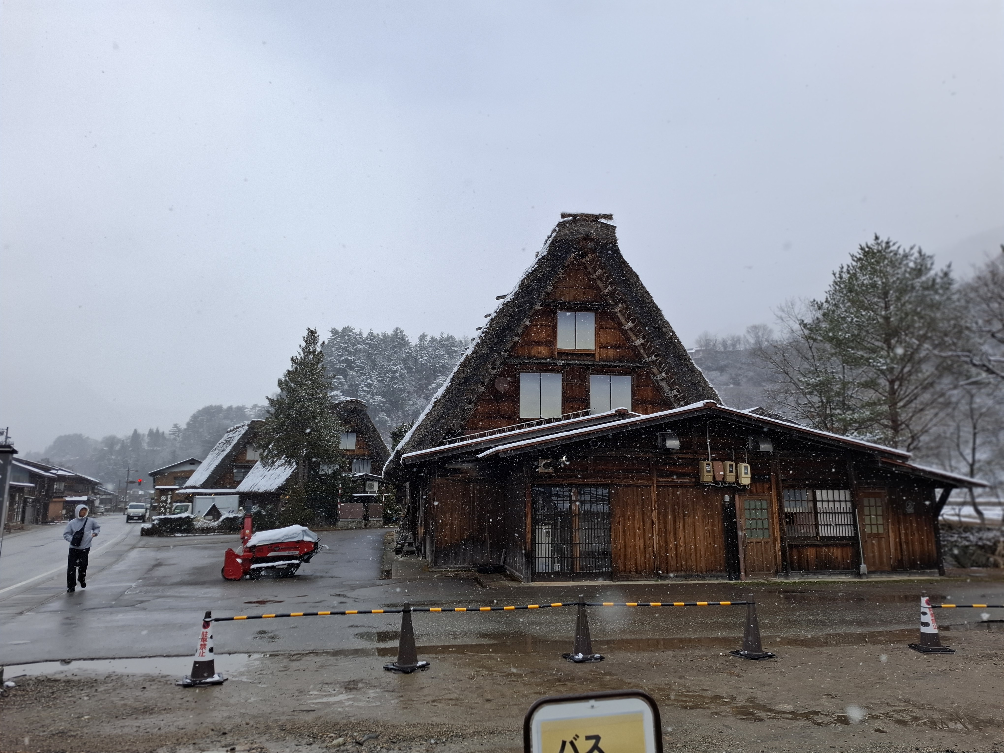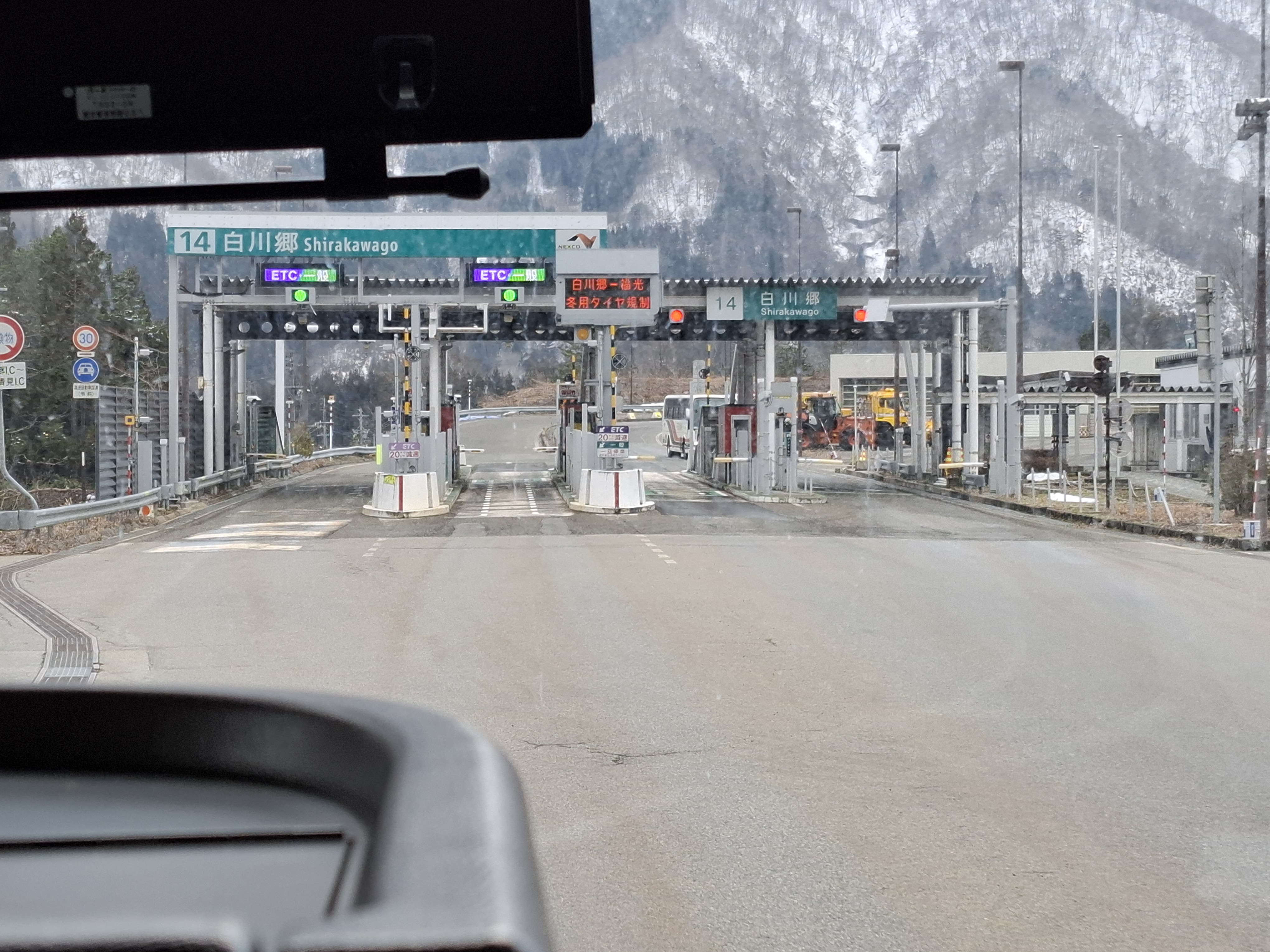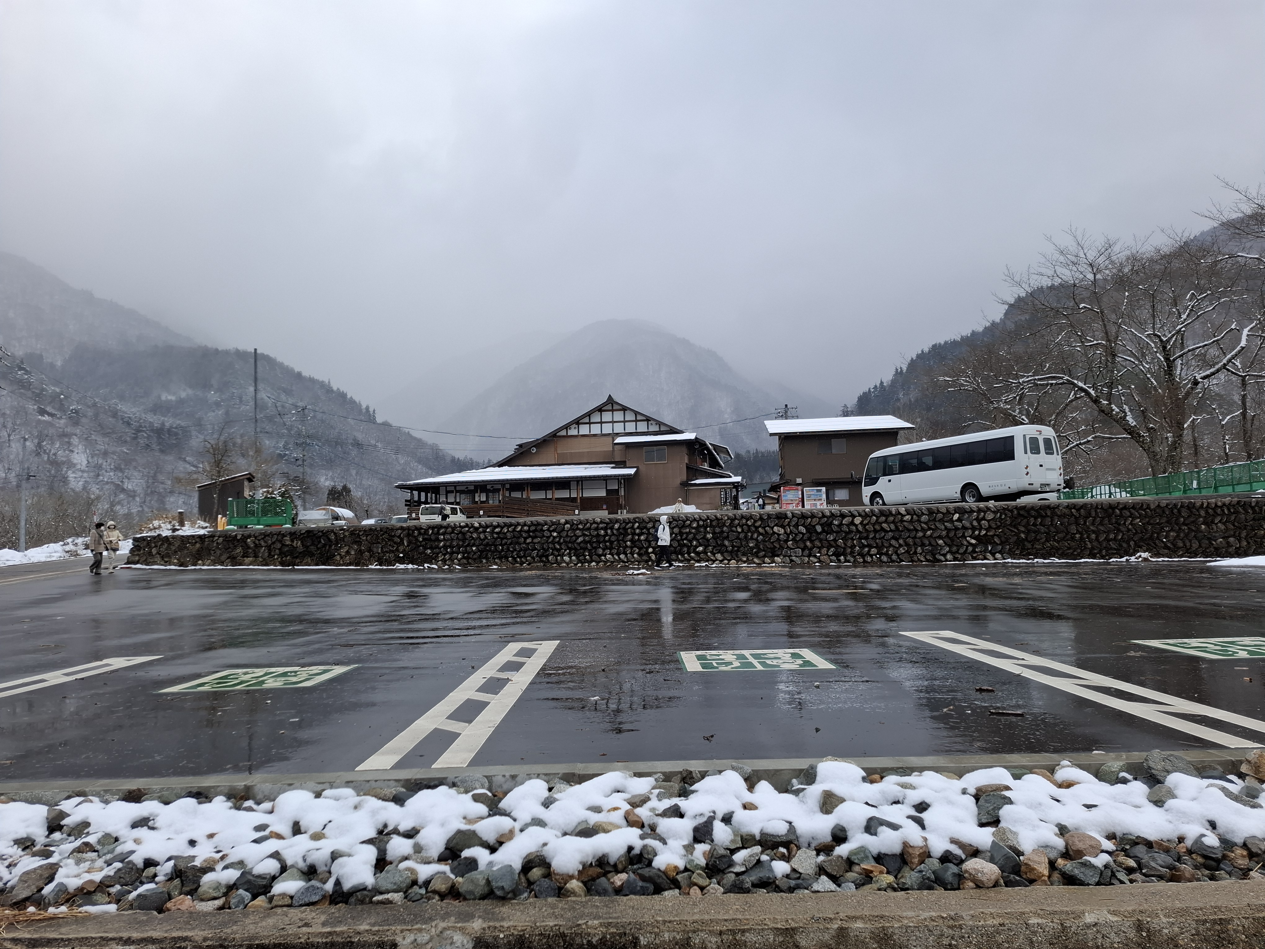 시라카와고 가는 길에 눈발이 내린다.