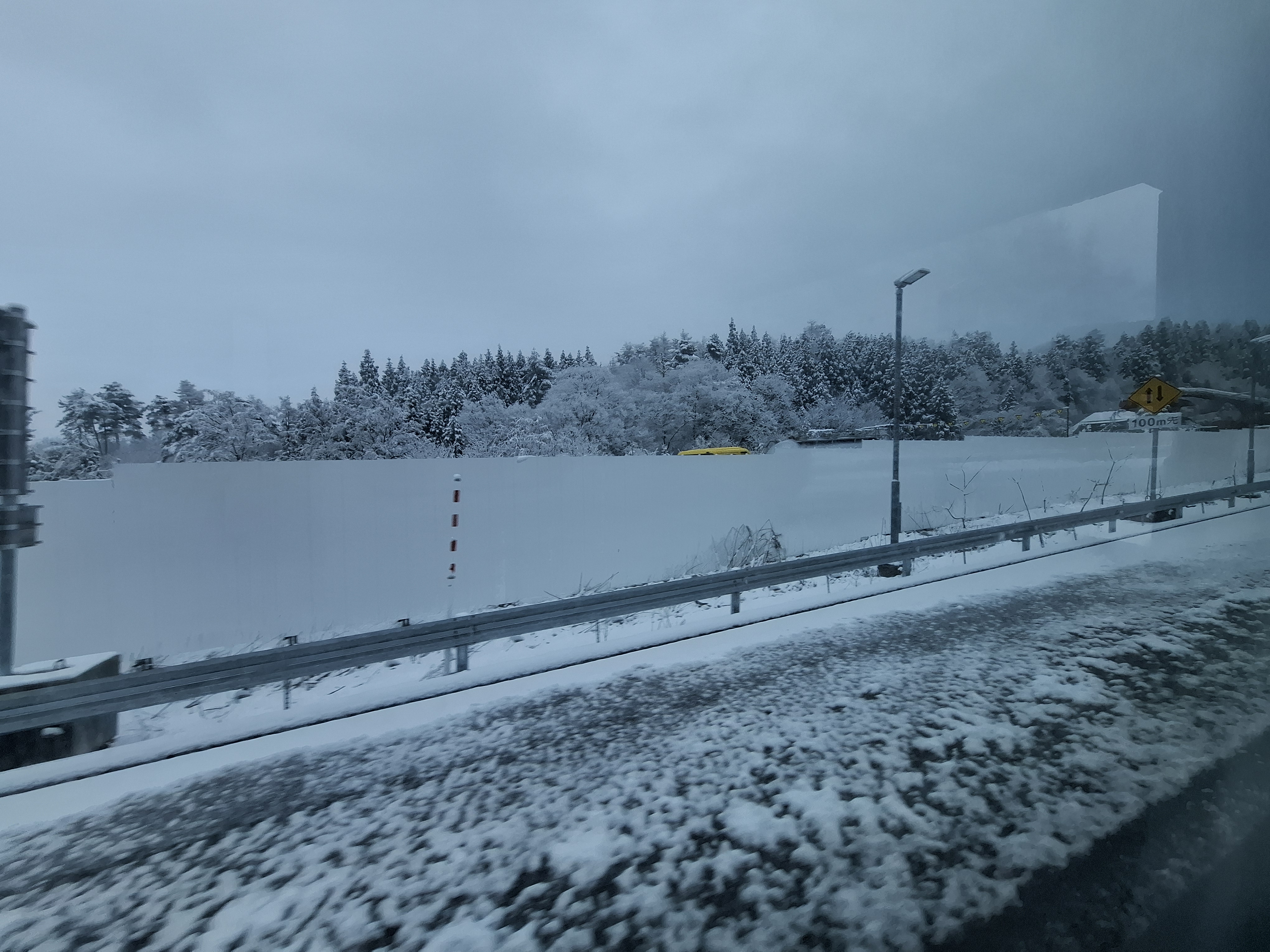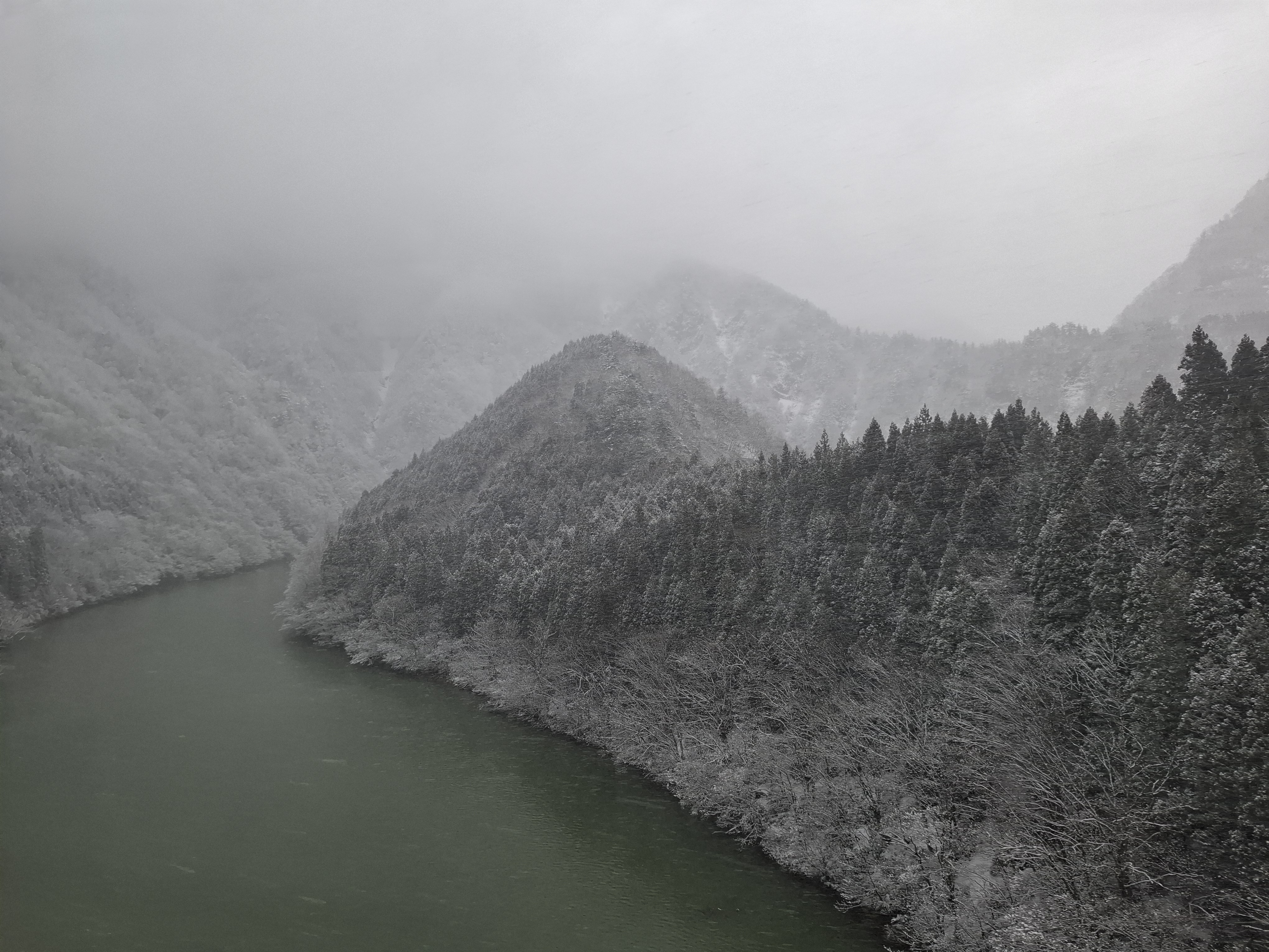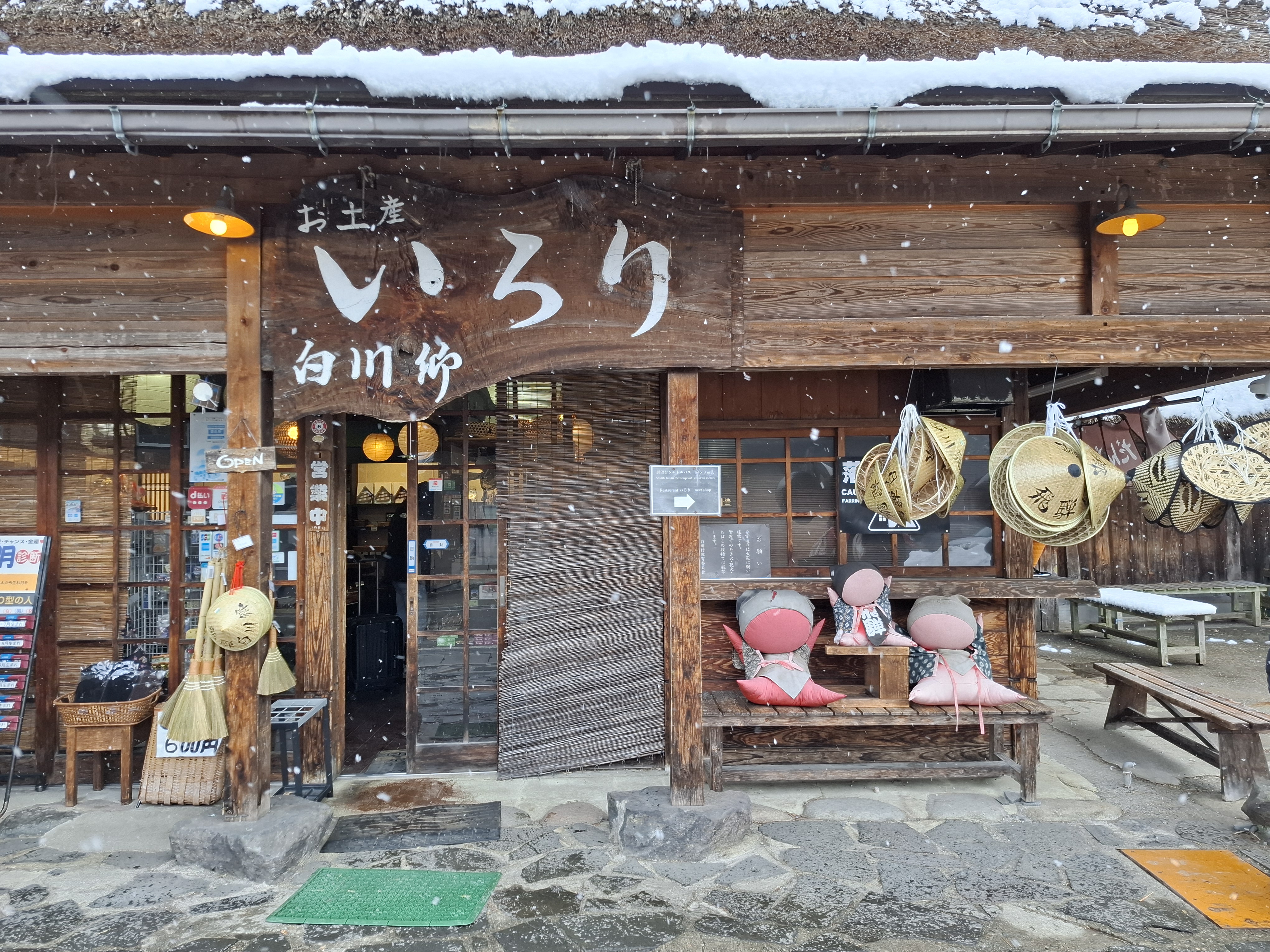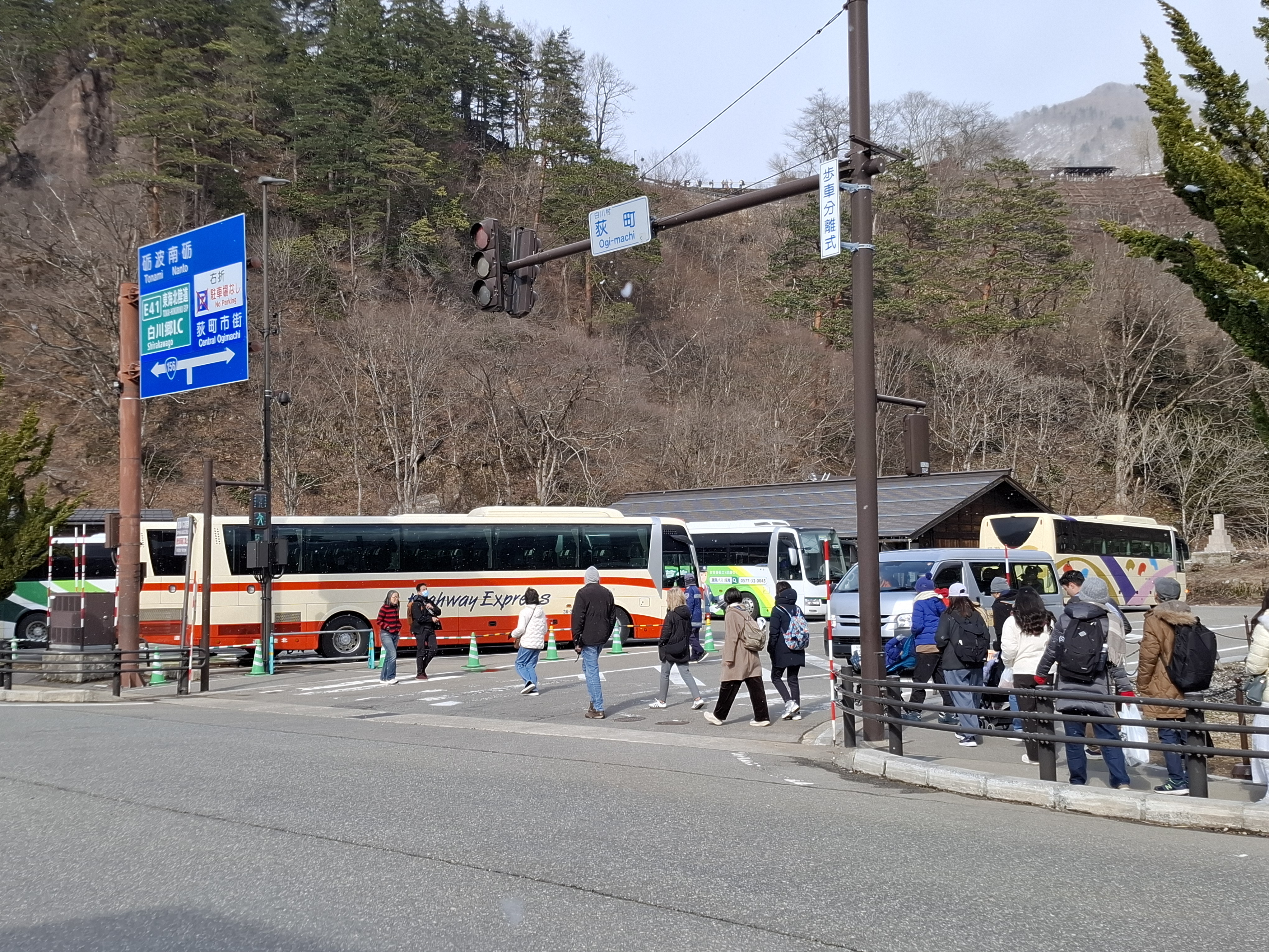 시라카와고 가는 길에 눈발이 내린다.