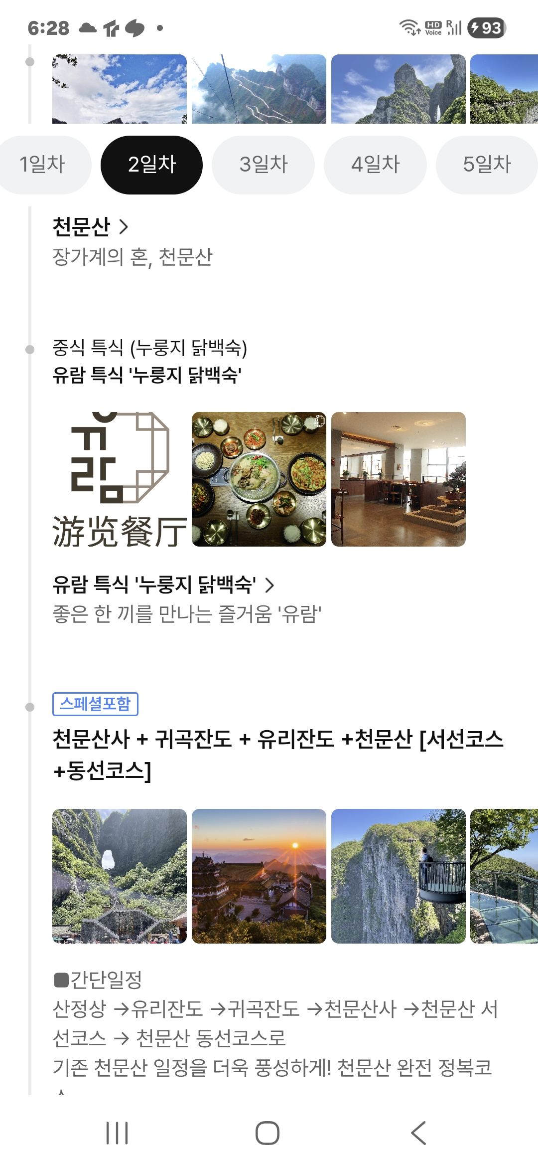 1. 10;00 천문산 출발 11;00 점심 12;00 천문산 입장. 유리잔도, 귀곡잔도. 천문산사